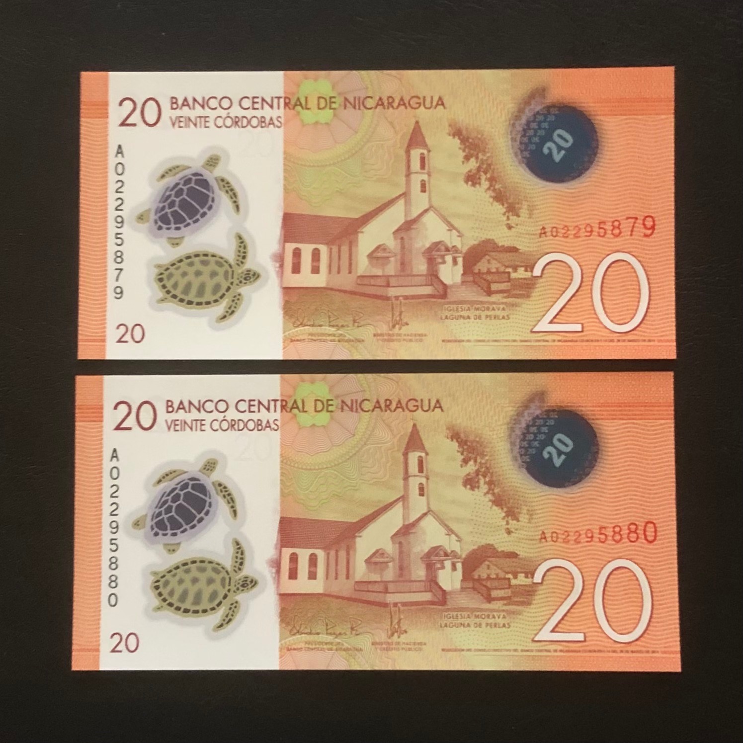 اسکناس جفت بانکی 20 کوردوبانیکاراگوئه شماره متفاوت