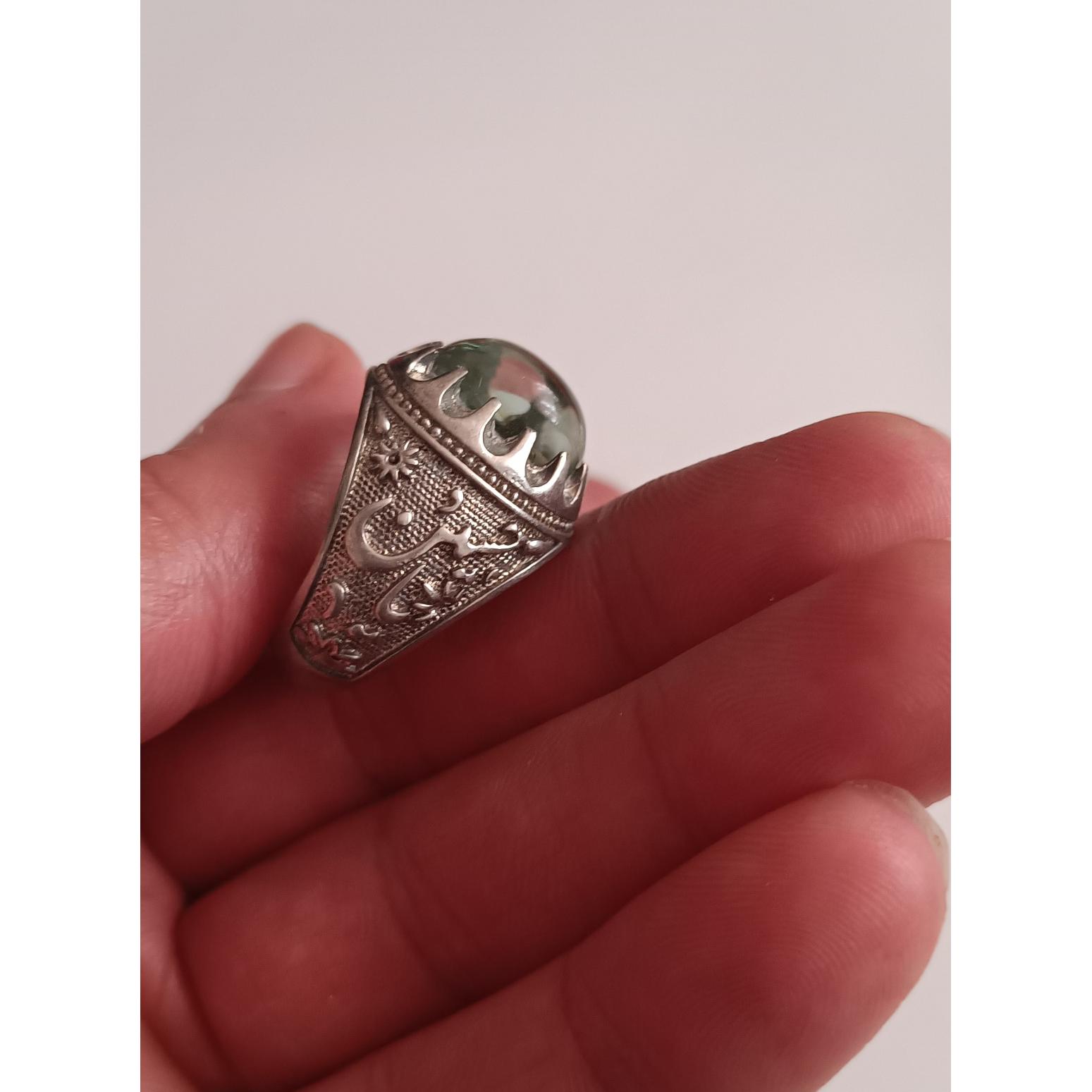 انگشتر طلاروس با روکش نقره با نگین ابسیدین و مزین به نام امام حسین و اباالفضل علیه السلام رنگ ثابت فاقد هرگونه حساسیت پوستی دست را سبز نمیکند