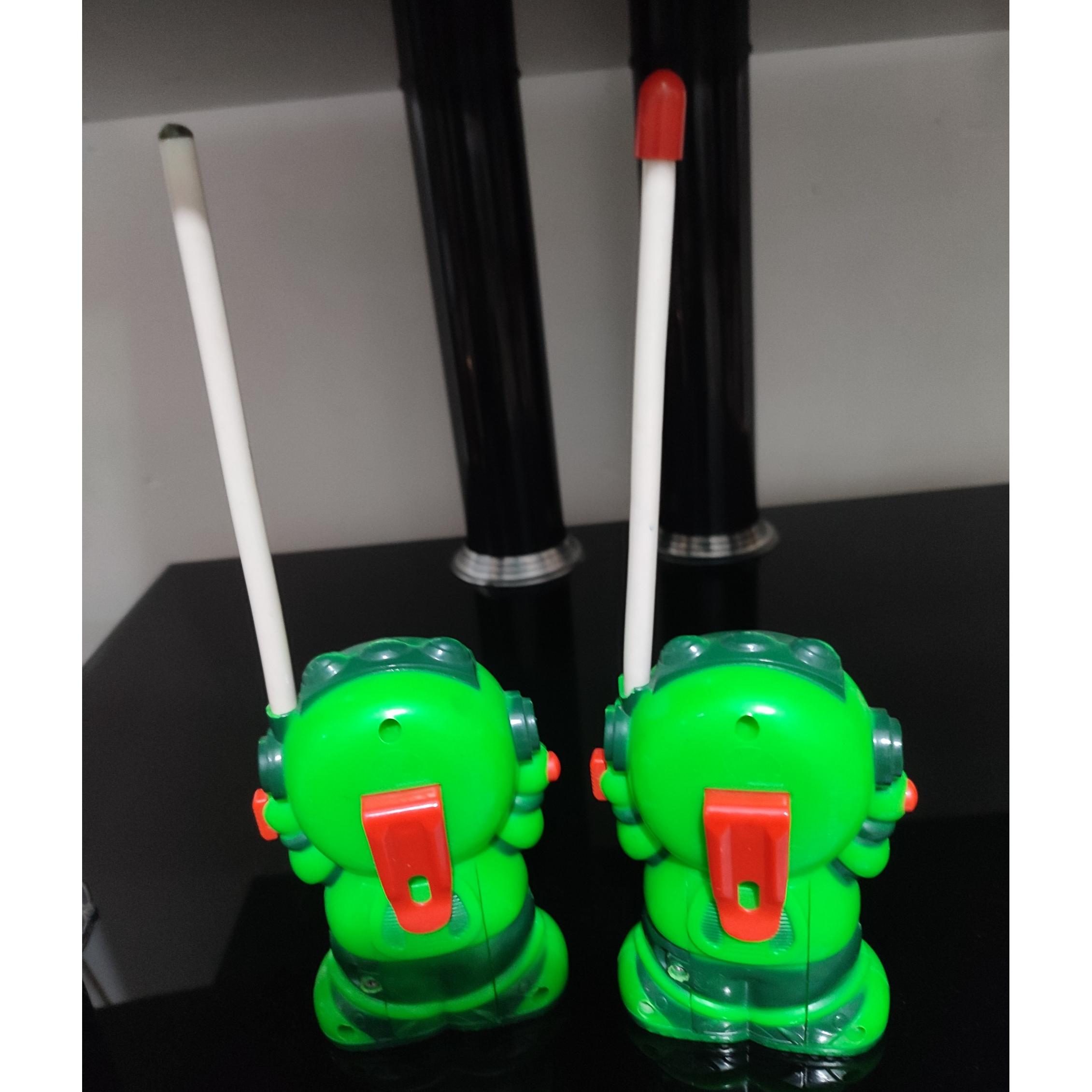 دو تا بیسیم اسباب بازی سالم کار میکند نیاز به باتری دارد در عکس سوم در هر طرف بیسیم یه ترک دارد 10متری صدای واضع شنیده میشود کالا کپی عکسها میباشد مرجوعی ندارم سوالی داشتید جواب داده میشود تشکر