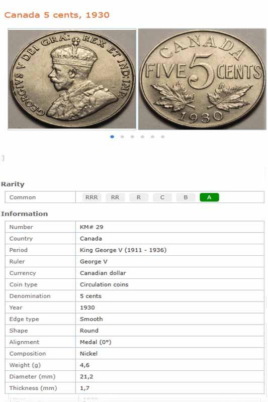 سکه 5 سنت کانادا جرج پنجم 1930 (نایاب)