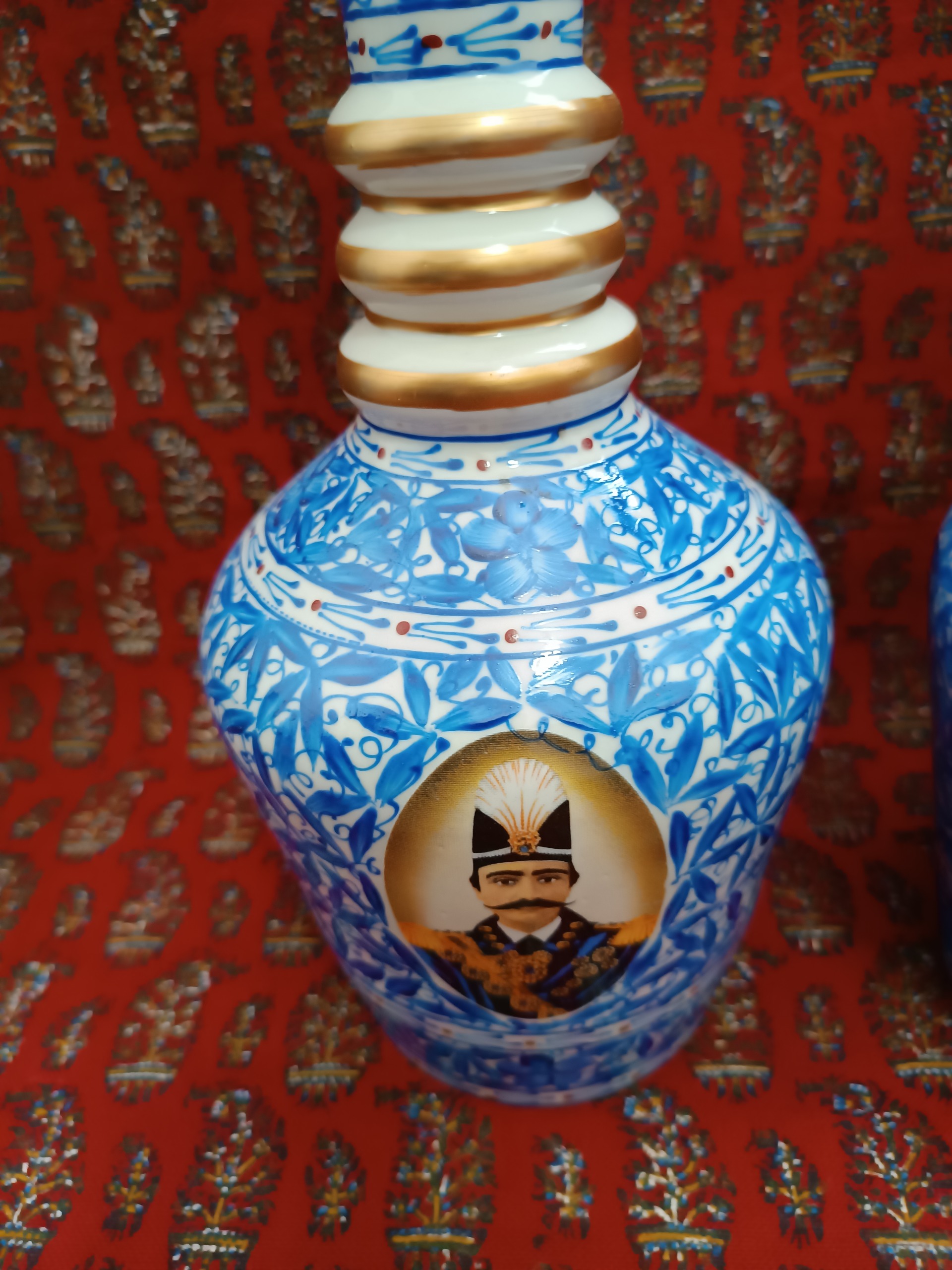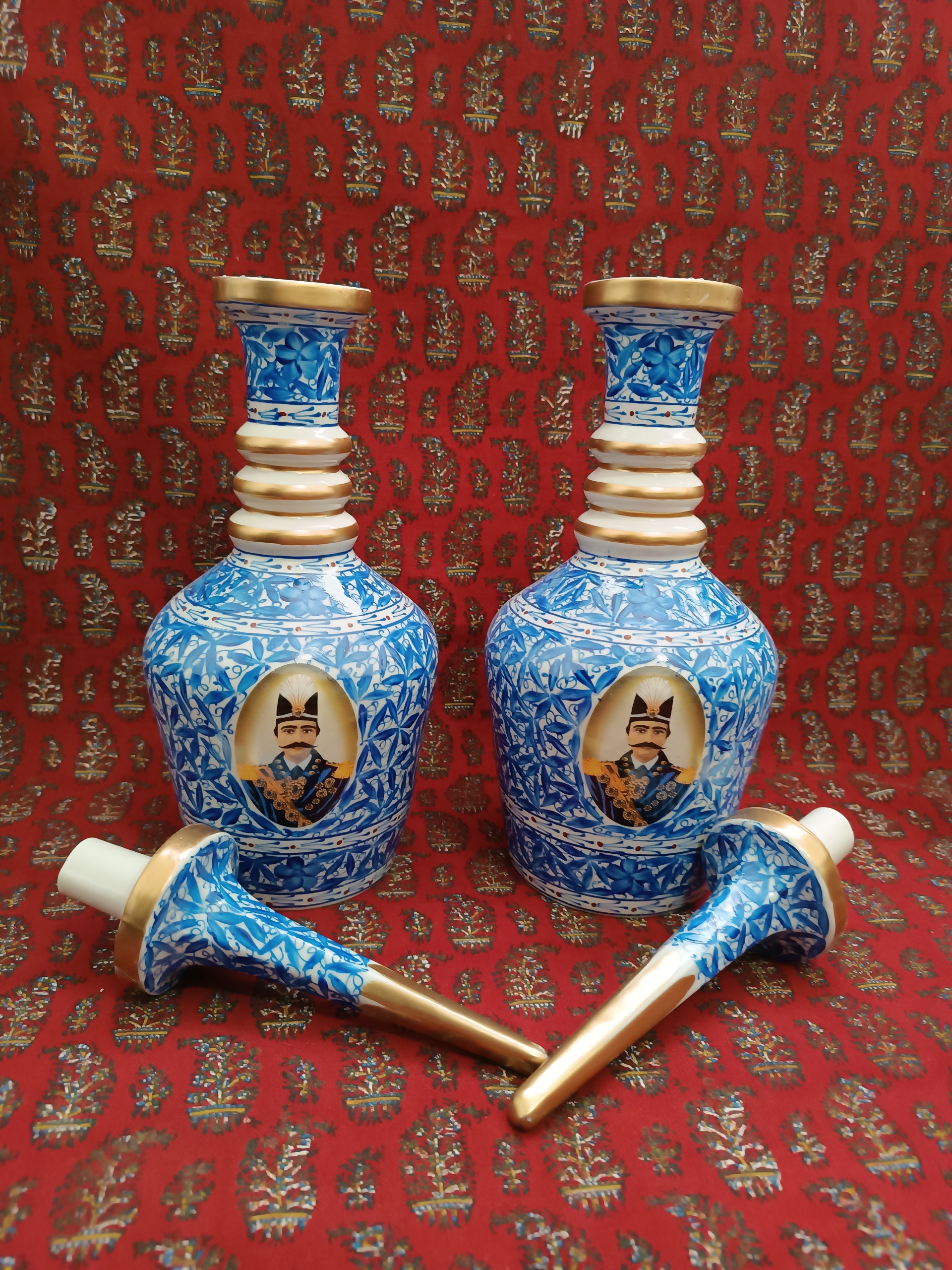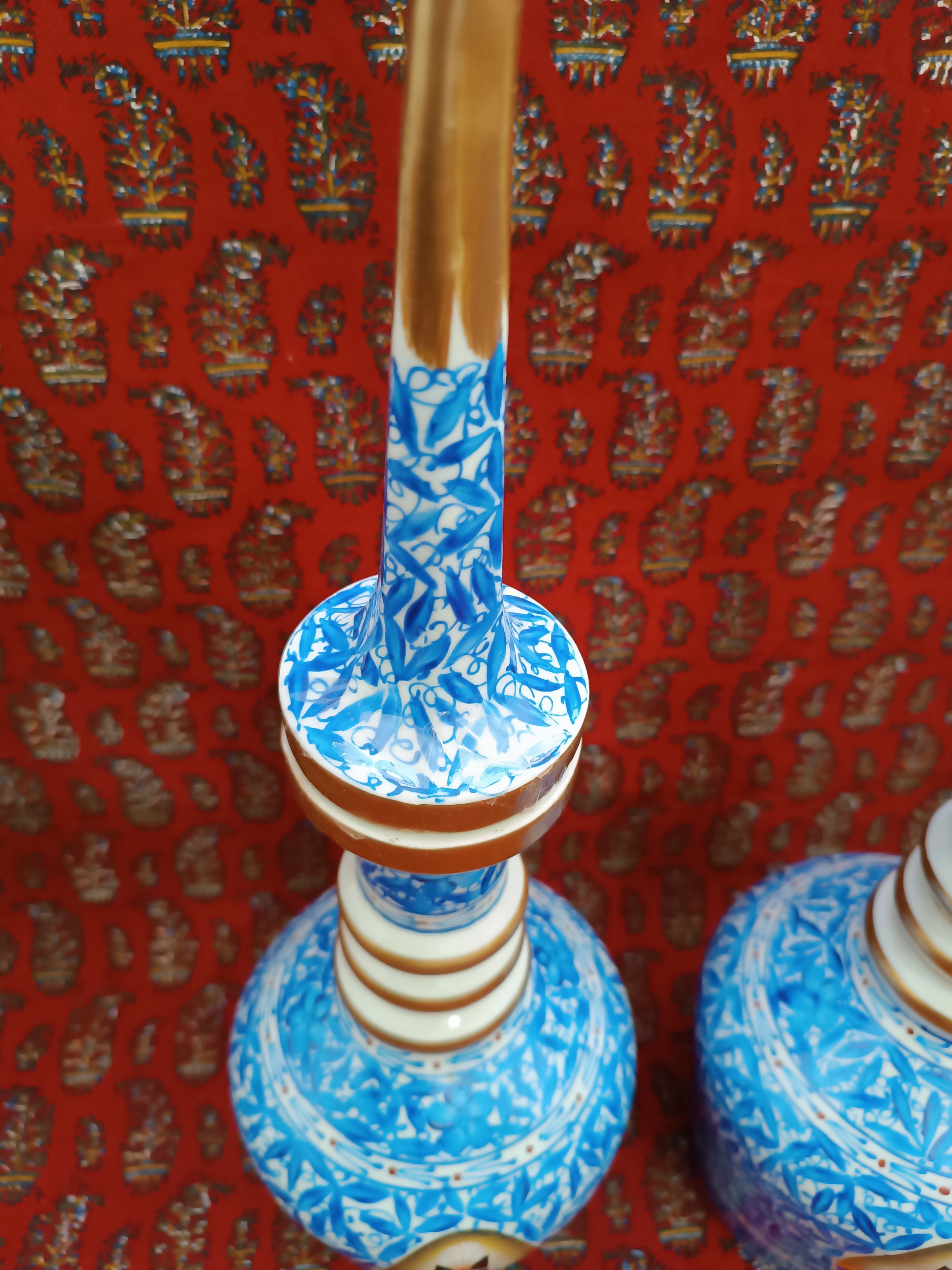 جفت تنگ شاخدار یا نیزه ای قلم آبی نقاشی دست کمیاب و کلکسیونی