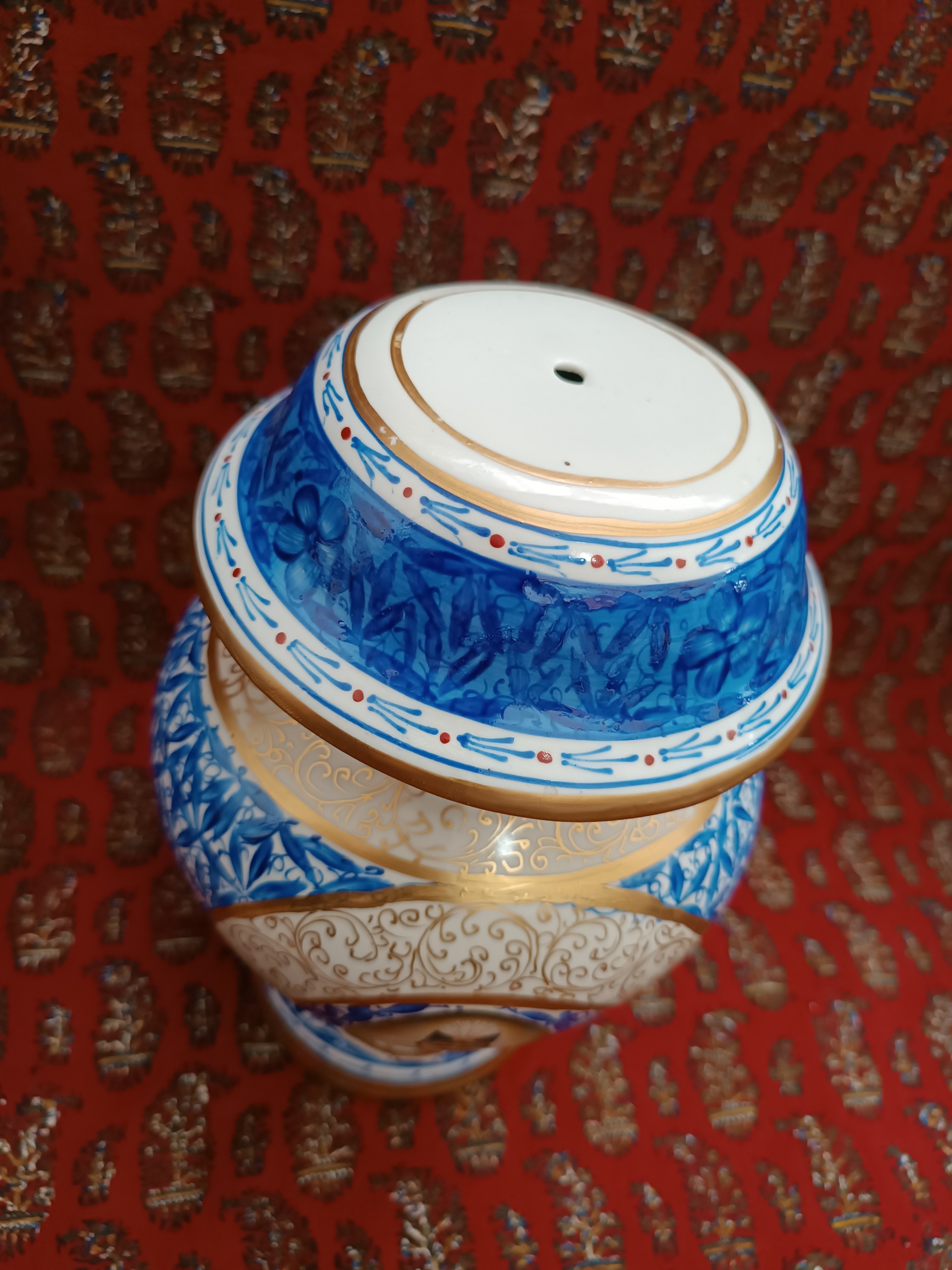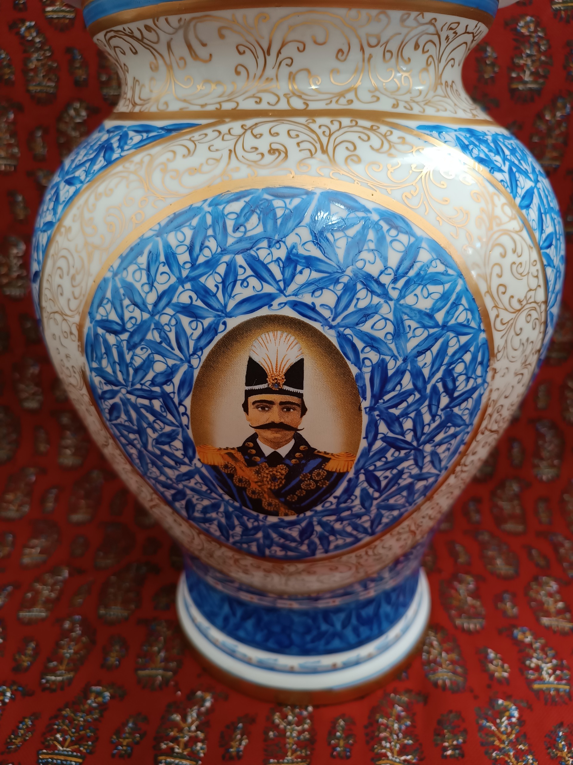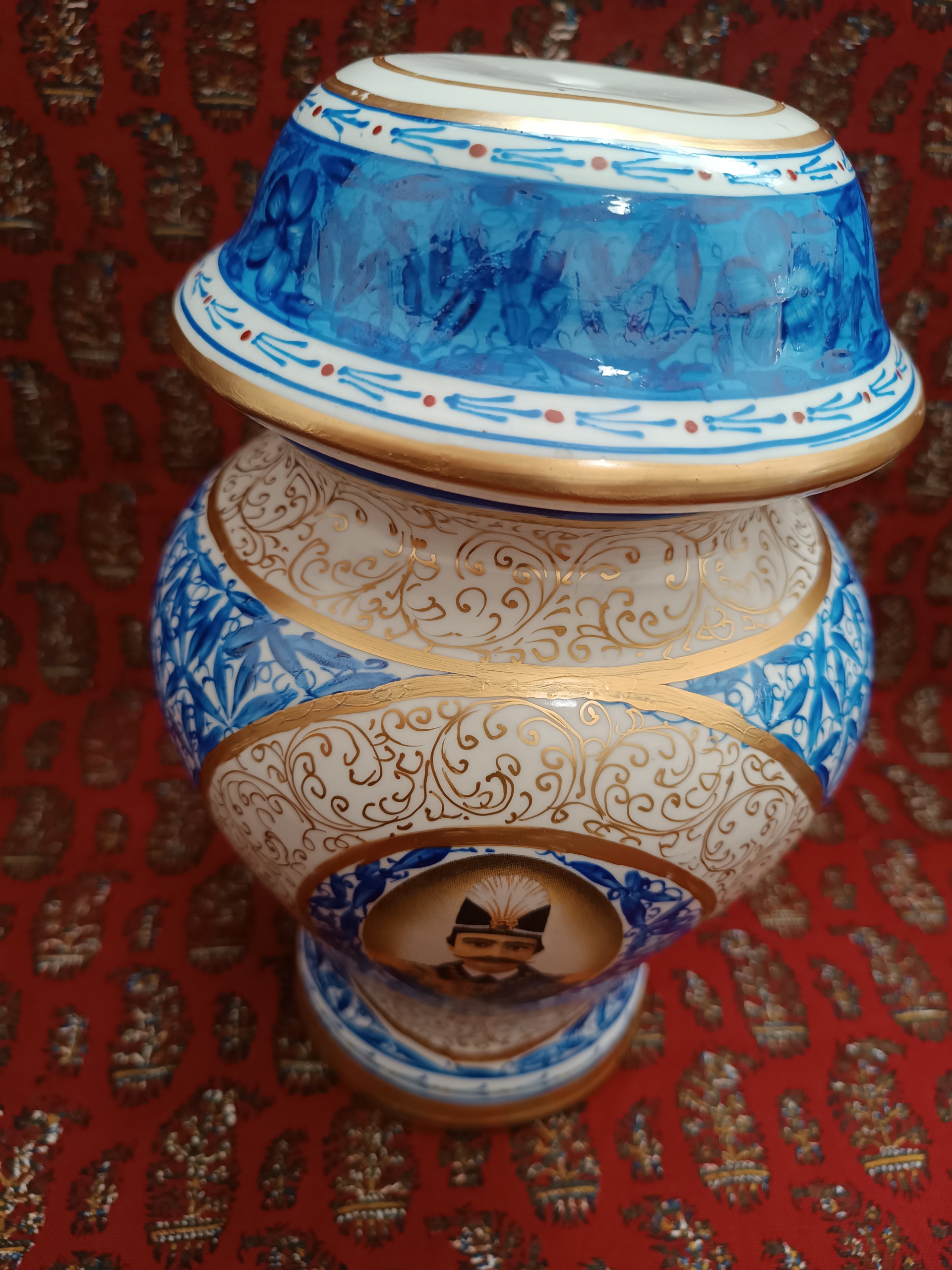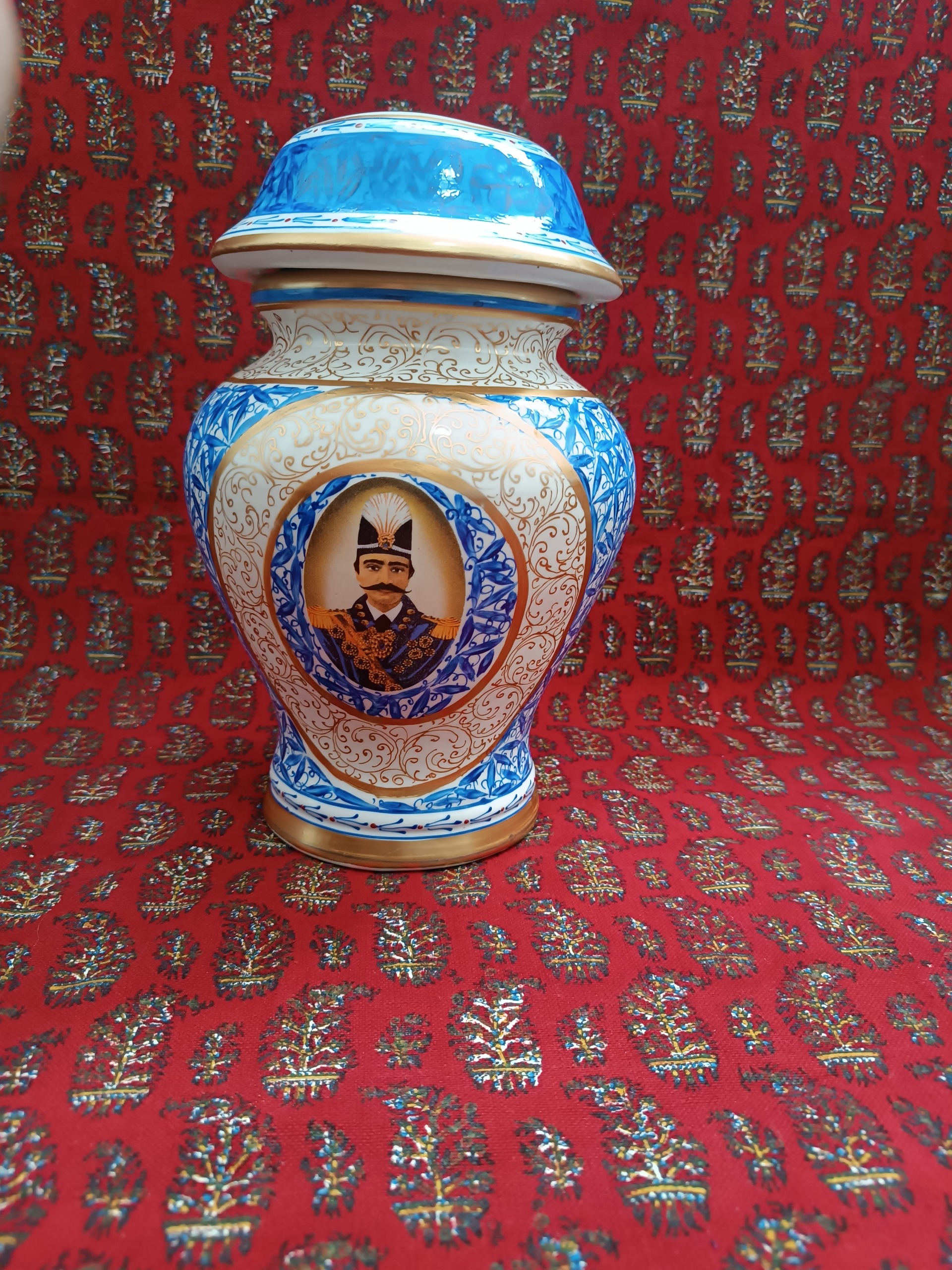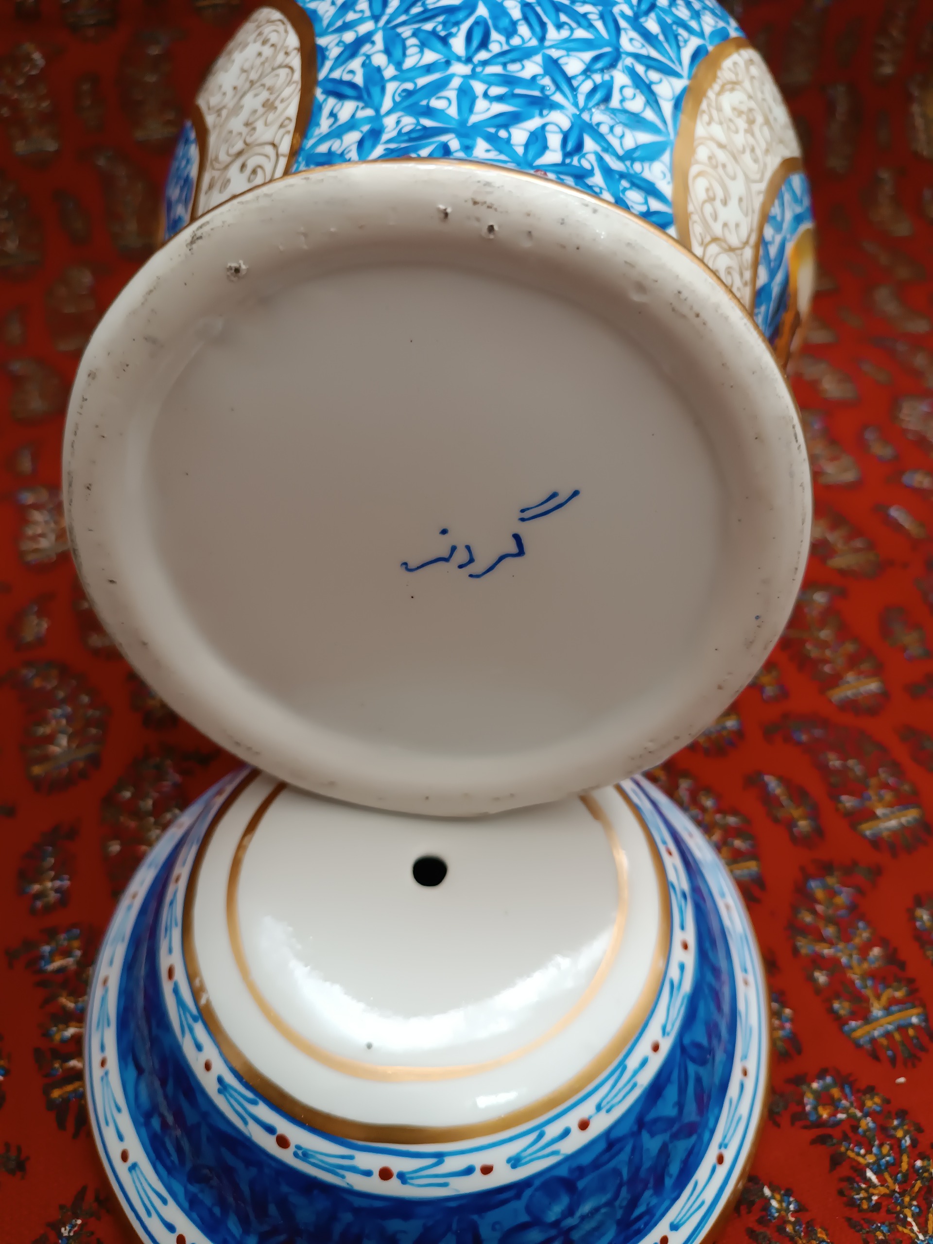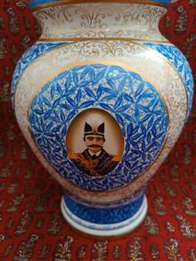 کاپ قلم آبی نو و بدن ایراد کار دست تماماً نقاشی سبز کوچک ارتفاع 27 سانت کار اصفهان