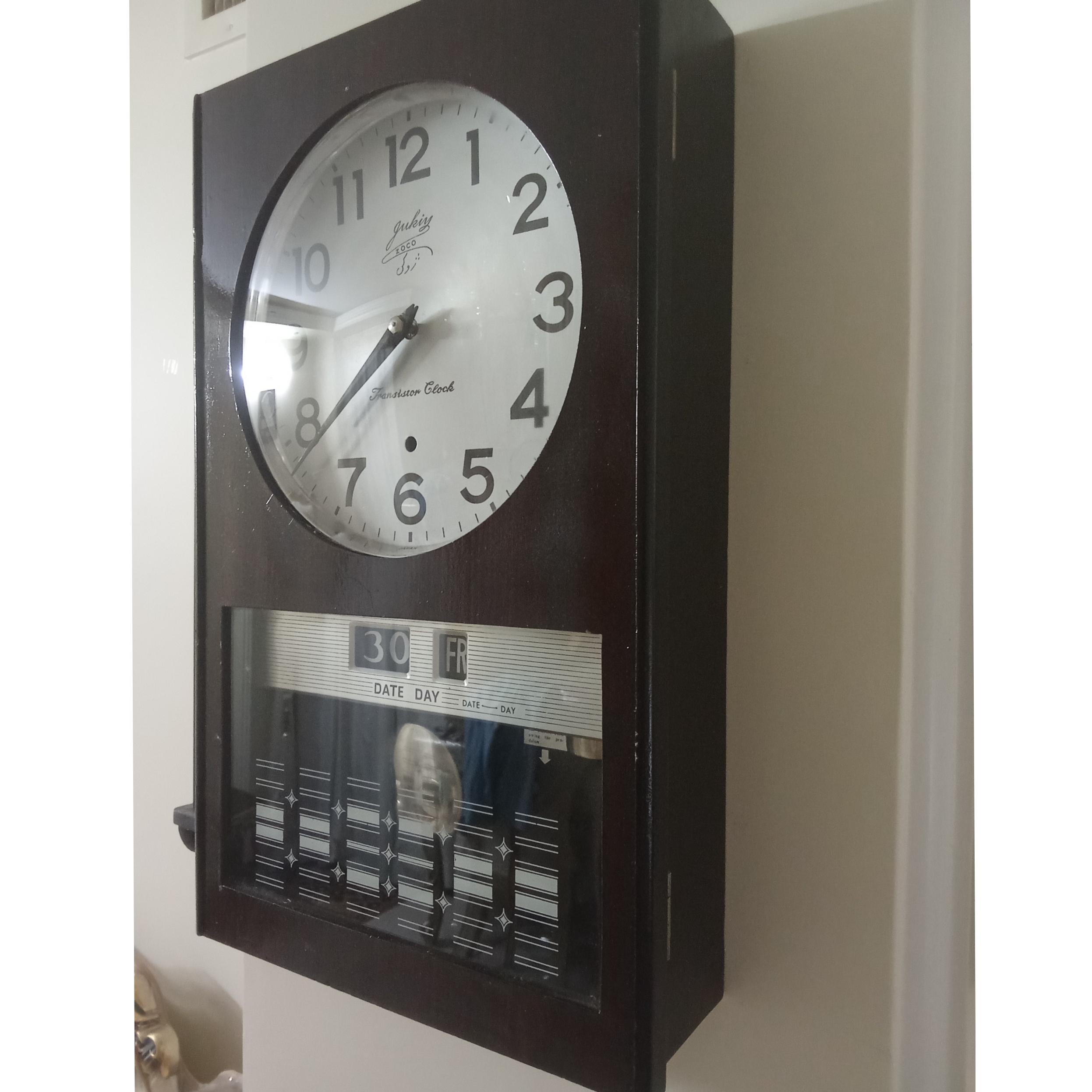 ساعت ژوکی امضا دار موتور تمام برنج ژاپن دارای نیم زنگ و تمام زنگ و تاریخ و نشانگر روز و شب سالم و در حال کار یک کار قدیمی با ارزش و قابل استفاده یادگار دوران خوش قدیم .