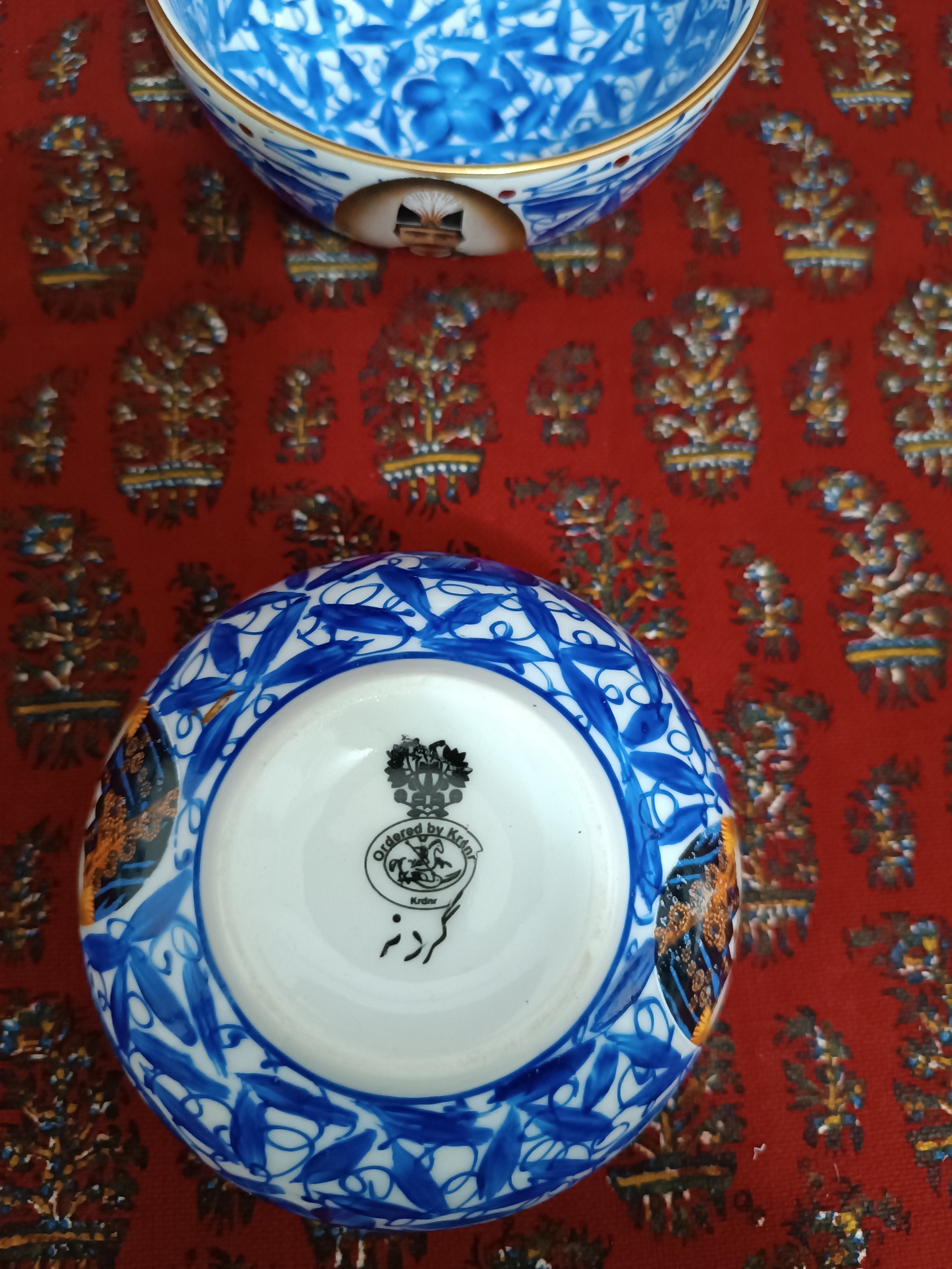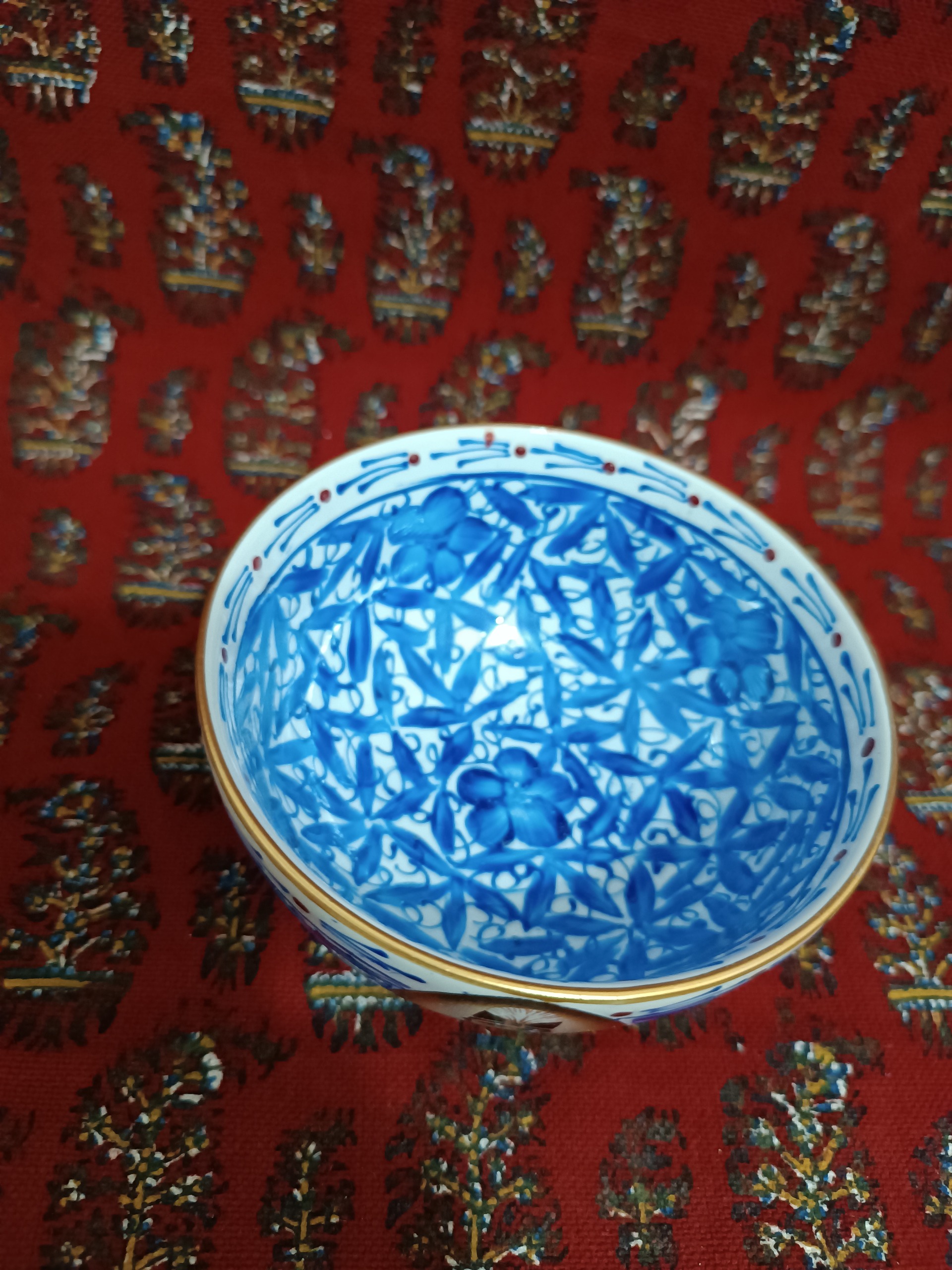 یک دست شش تایی پیاله ماست خوری قلم آبی ناصری کمیاب و بی نظیر