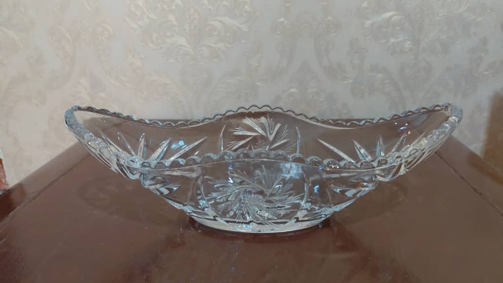 نقل خوری کریستال تراشدار به طول 34 و عرض 11 سانت.