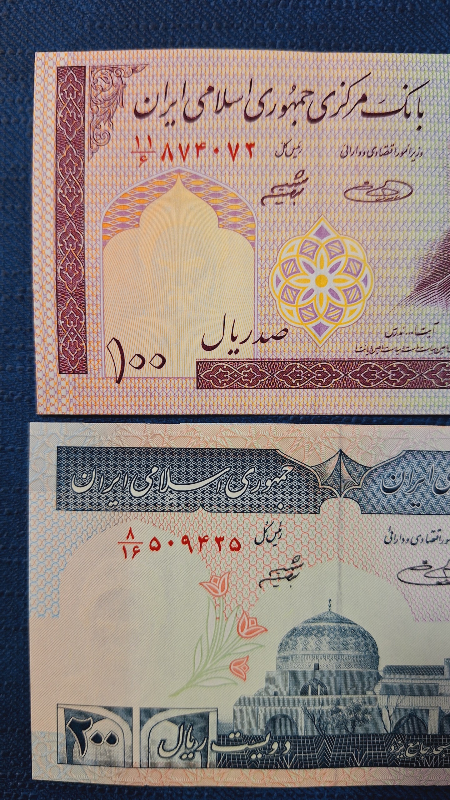 جفت 100 ریالی کمی ارور کادر دارد و ضمن اینکه چاپ امضاء صفدر حسینی نازک و امضاء شیبانی ماژیک چاپ شده