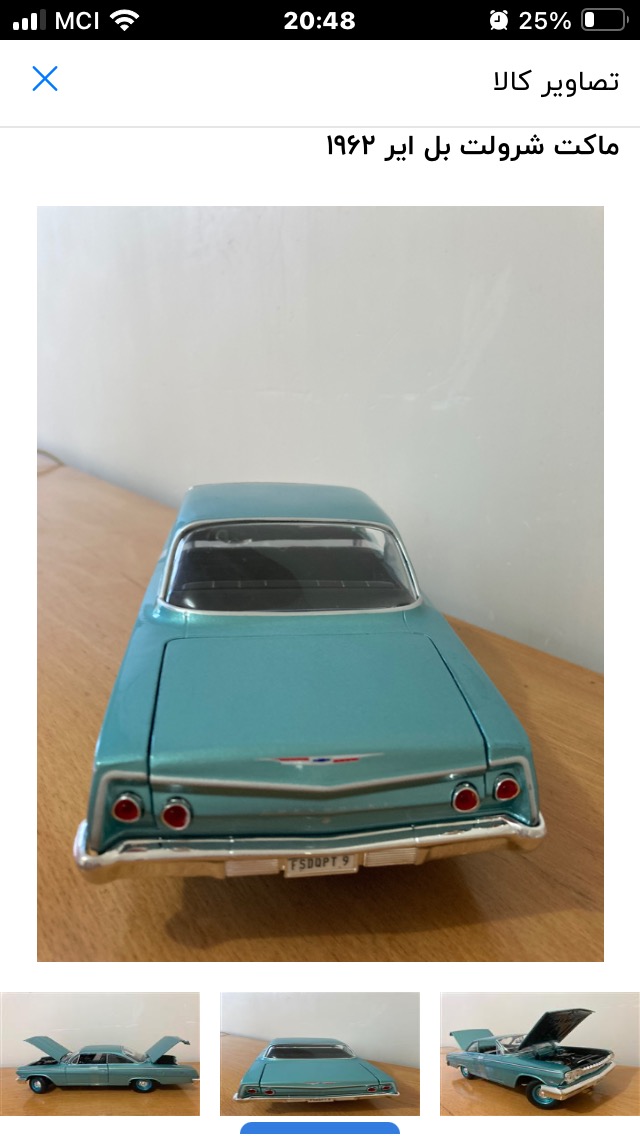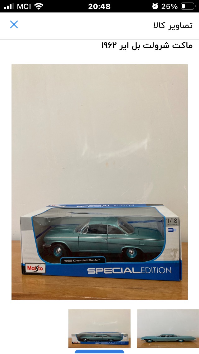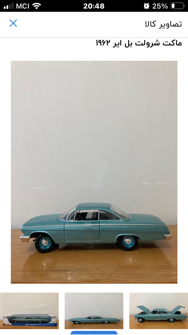 ماکت فلزی شورولت بل ایر مایستو 1962 بامقیاس 1/18 نو آکبند اصلی تمیز و زیبا و جذاب فرمان پذیر دو درب جلو و. کاپوت و صندوق عقب بازشو