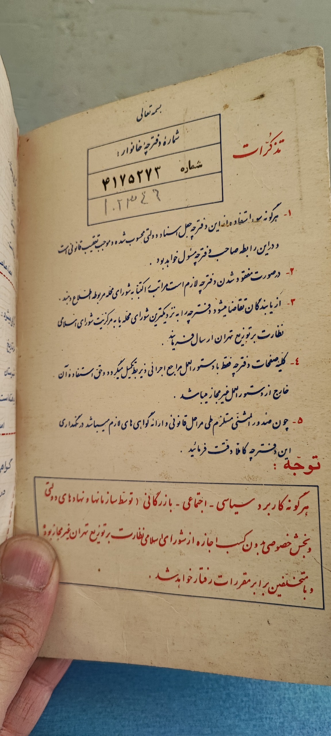 دفترچه توزیع ارزاق شهر تهران سال 1367