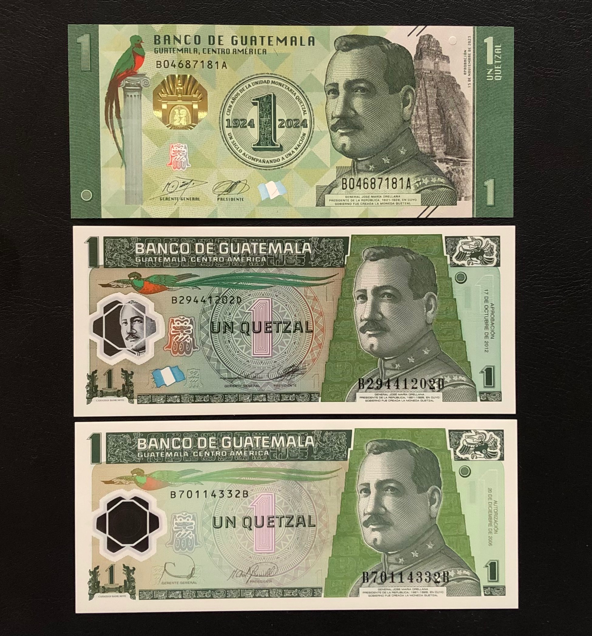 سه عدداسکناس بانکی1کوتزال گواتمالا2006و2012و2024