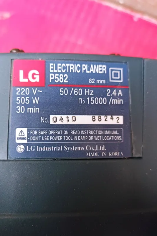 رنده نجاری برقی ال جی P582 ساخت کره ، آکبند ، قدمت حداقل برای 20 سال ، دارای کارتن و لوازم جانبی طبق تصاویر ، کیفیت بسیار عالی و تضمینی ، قیمت خیلی مناسب
