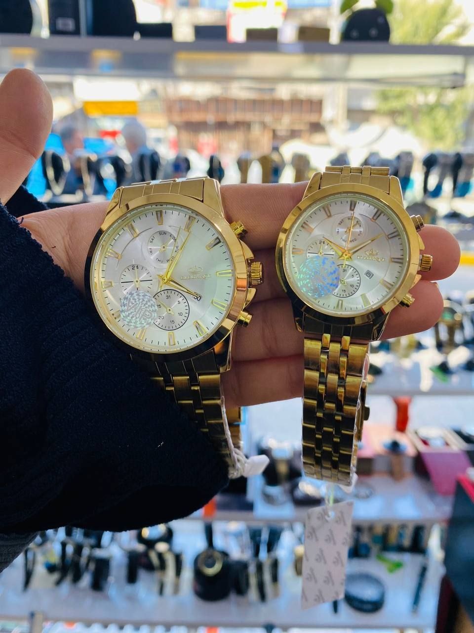 Elegance، ست دو تایی که همصدا با شبهای شهر است و هم به روزهای آرام شما نور میبخشد. هر دو ساعت با بدنهای از فلز براق و بندهای زربافت، روی مچ دستت مانند دو قطعه جواهر میدرخشد. صفحههای روشن با تایملاینهای مینیمال، نشانگرهای واضح و نمایش تاریخ، به ناچار شما را به سوی دقیقترین لحظهها هدایت میکنند. تفاوت اندازه با یکدیگر، اما همسو بودن در سبک، به شما امکان میدهد بدون تردید ست را در هر مناسبت بپوشید: از جلسات کاری تا مهمانیهای دوستانه. حرکت کوارتز با باتریهای قابل تعویض، سنجشی آرام ولی دقیق ارائه میدهد و شیشهٔ مقاوم در برابر خط و خش شما را از آسیبهای روزمره محافظت میکند. این ست با جعبهٔ لوکس و گواهی اصالت، هدیهای بینظیر برای خود یا کسی که دوستش دارید است.