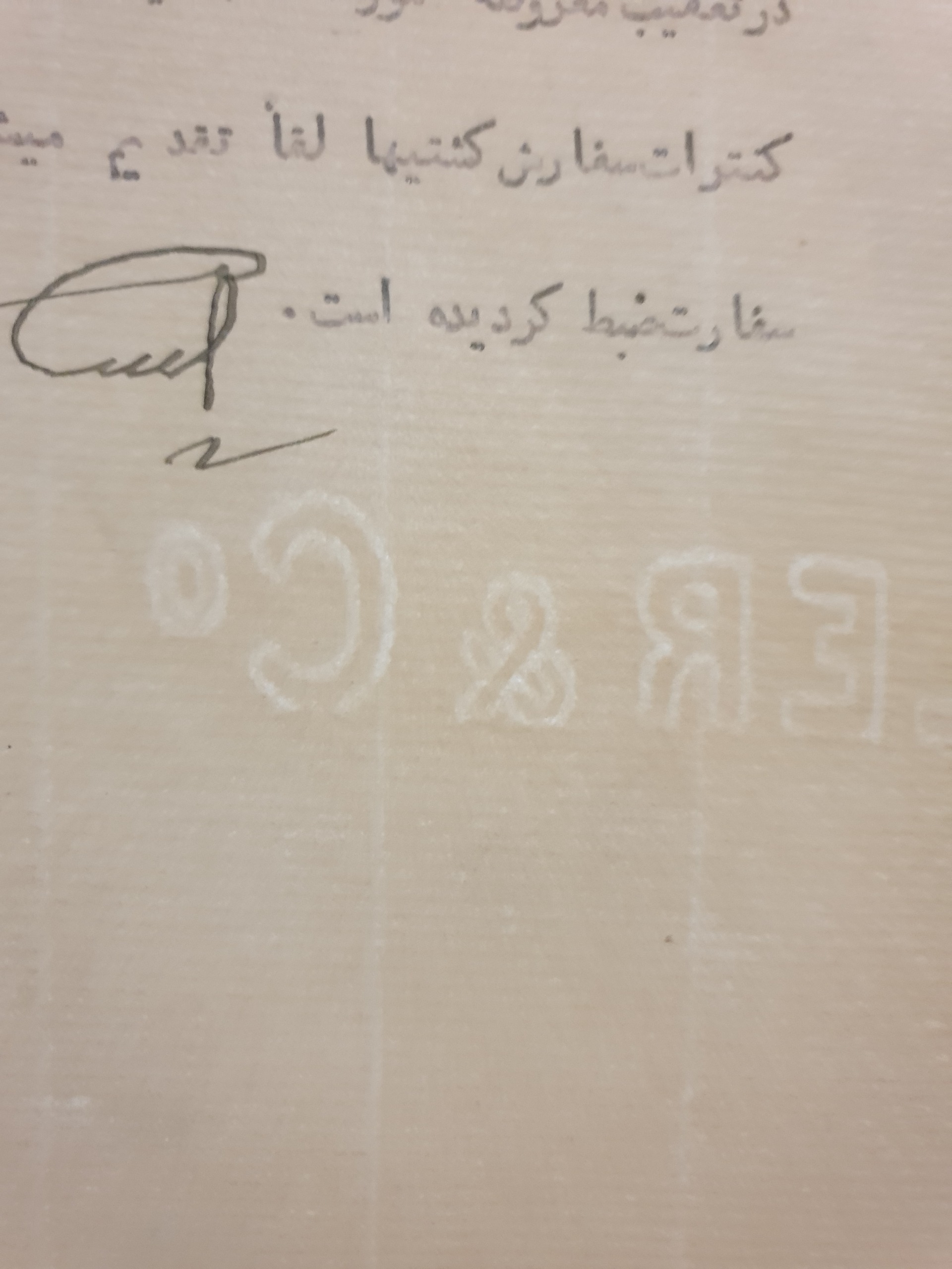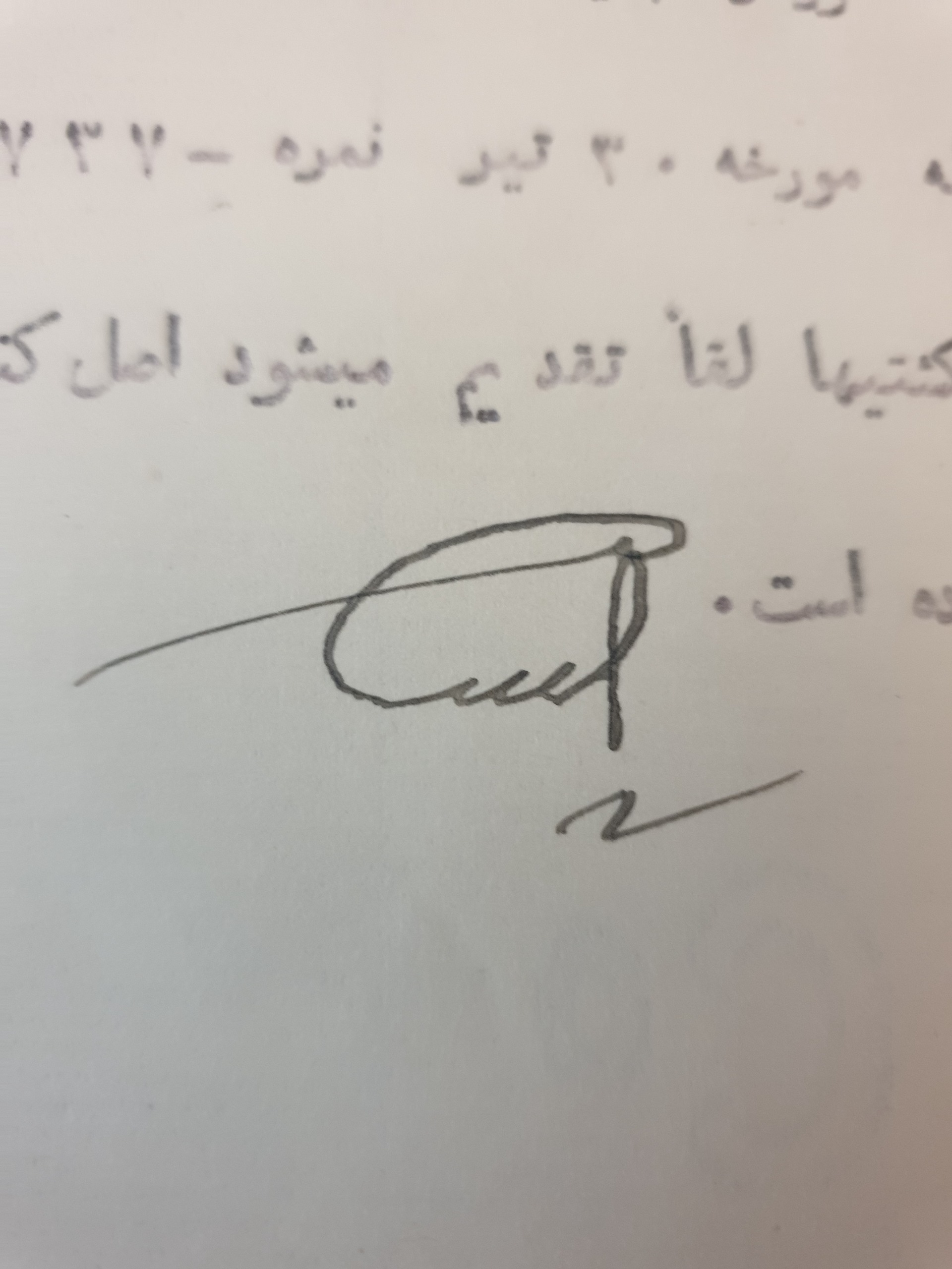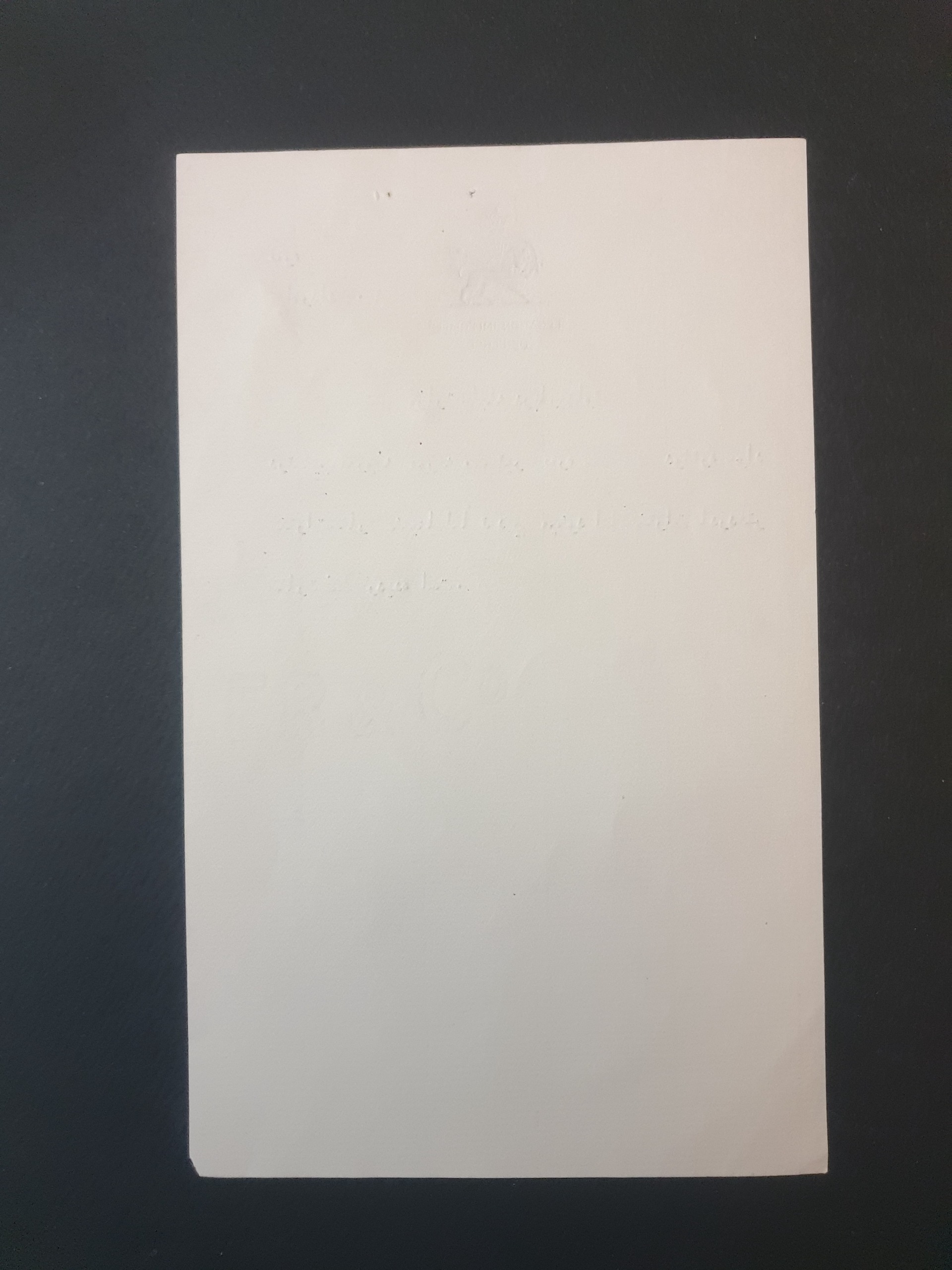 سربرگ سفارت با شیر و خورشید سیاه و امضا انصاری