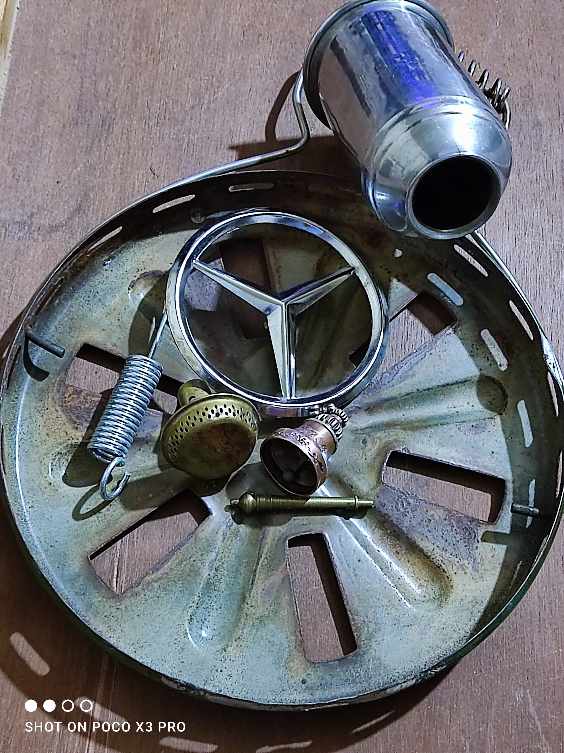 خورده یزای قدیمی و کاربردی سری چراغ علاالدین نفتی با دستش///سوزن برنجی وافور///زنگوله کوچک/// آرم فلزی مرسدس بنز/// چایدان برنجی قدیمی که سر نداره/// و یک عدد سرشعله برنجی قدیمی مطابق تصاویر قیمت برای همشه کلا هفت عدد میشه با اون فنر موتور سیکلت