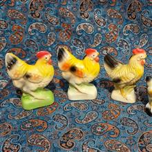 نمکدان سفال سرامیکی طرح خروس کمیاب قدیمی بسیار زیبا در یکی دو نقطه دارای رنگ پریدگی هستند که در عکس مشخص میباشند در حد نو مطابق تصویر
