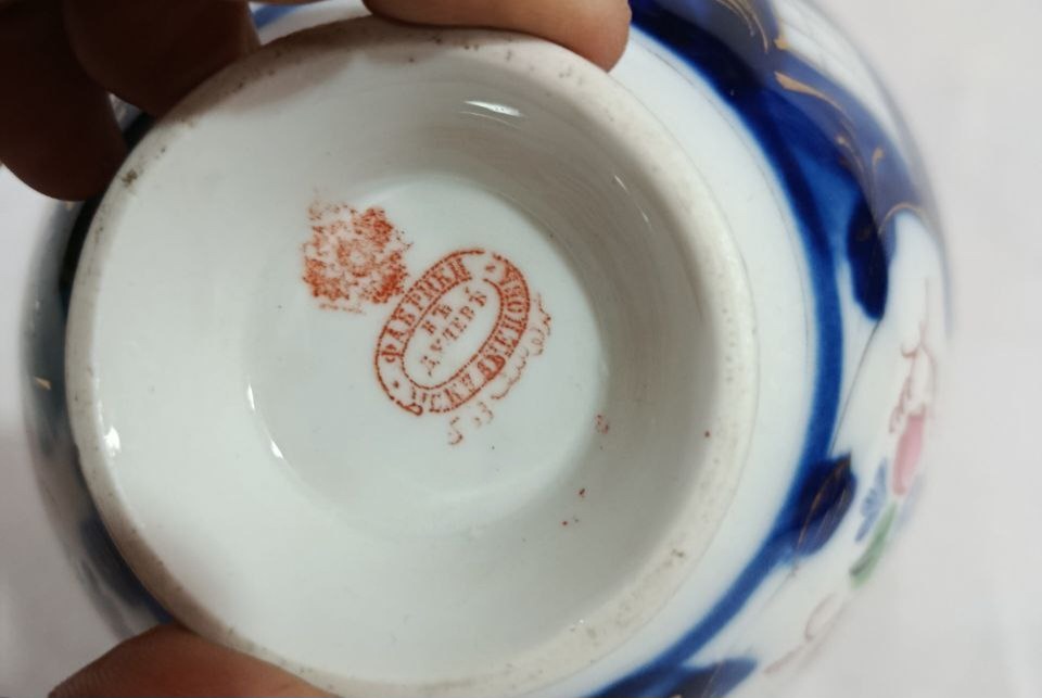 پیاله وبشقاب صدساله روسی قطر پیاله 14 وقطر بشقاب 18