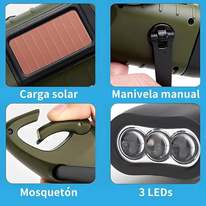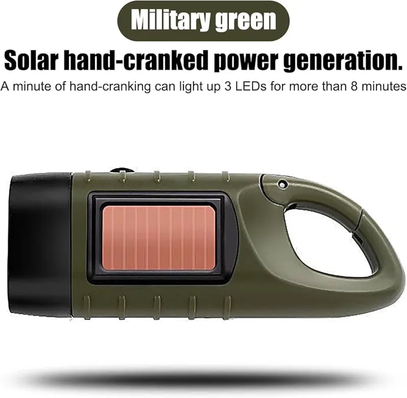 چراغ قوه خورشیدی ضد آب قابل شارژ | چراغ قوه بقا LED قابل شارژ با هندل | لامپ LED جمع و جور دستی برای بقا در کمپینگ، ورزش، فعالیت های پیاده روی در فضای باز