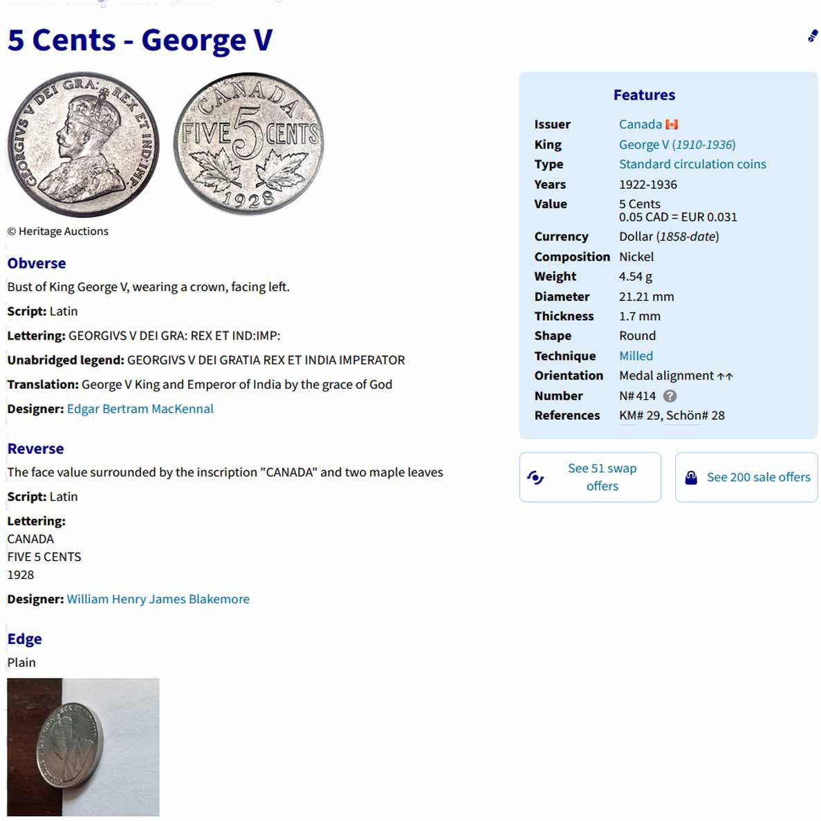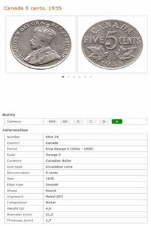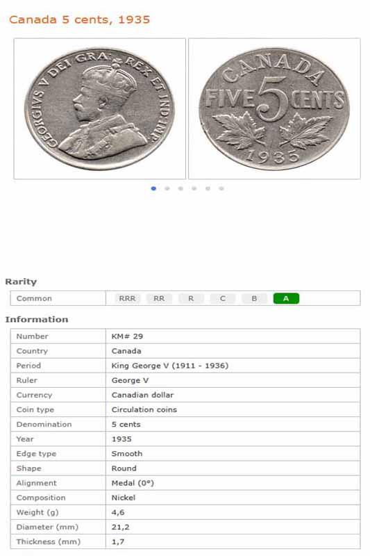 سکه 5 سنت کانادا جرج پنجم 1935 (نایاب)