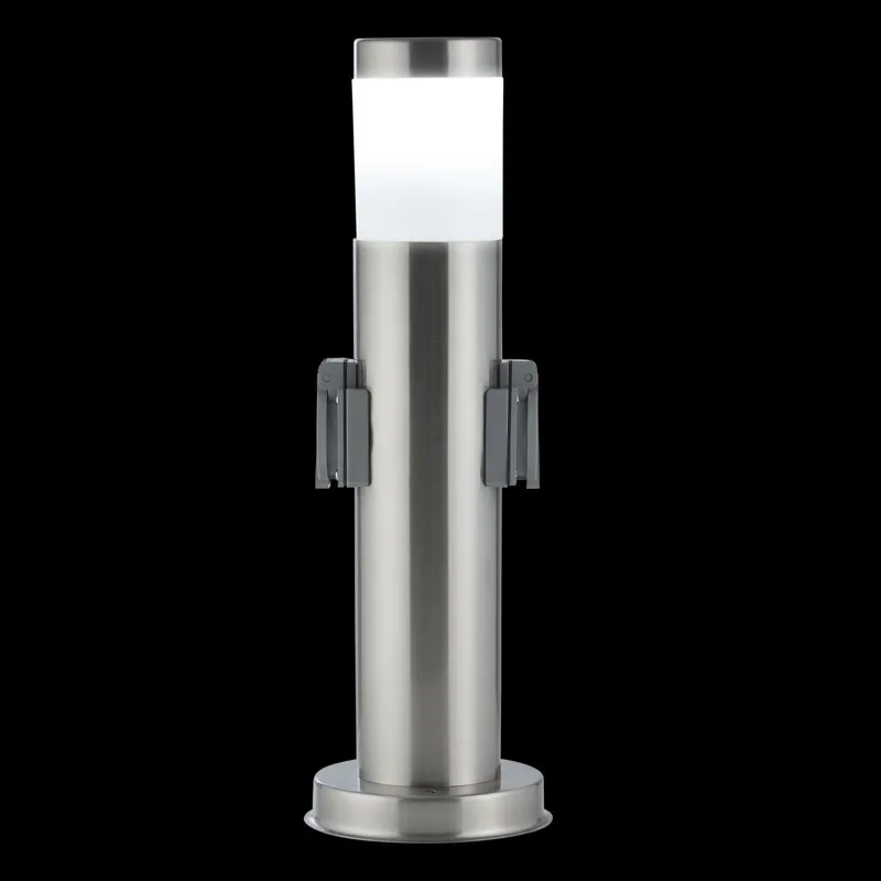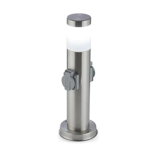 پریز برق باغ و روشنایی خارجی منبع انرژی برای باغ ها، حیاط ها و محوطه ها. روشنایی در ساعات تاریک و منبع برق بی فایده ساختن سیم کشی ستون انرژی Waldbeck Monolite ساخته شده از فولاد ضد زنگ برس خورده دو سوکت ارائه می دهد