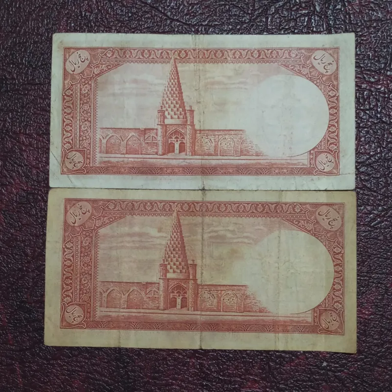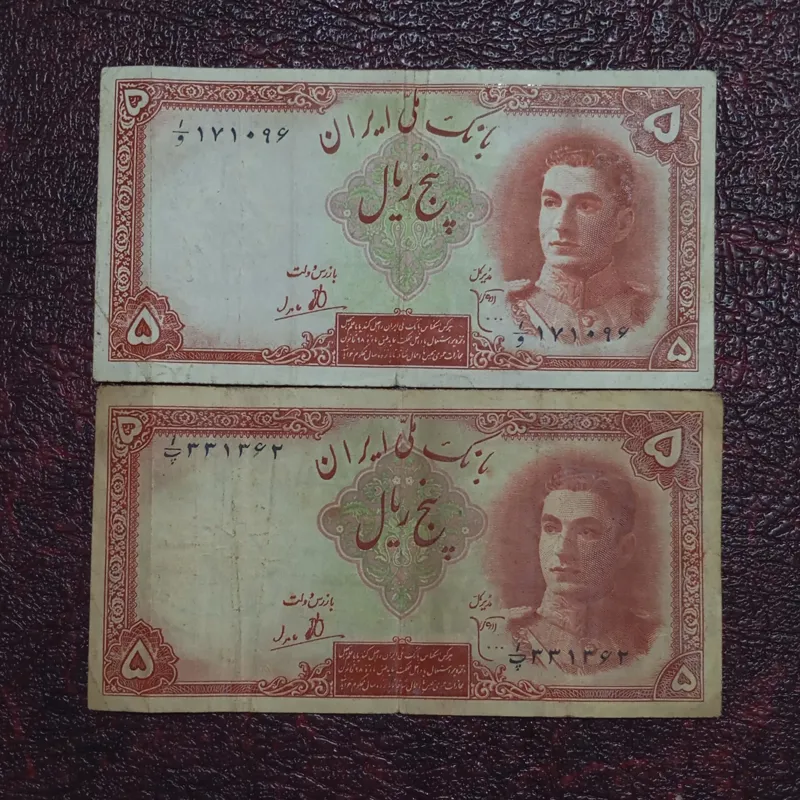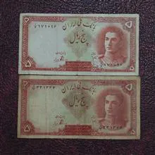 دو برگ 5 ریال سری اول محمدرضا شاه