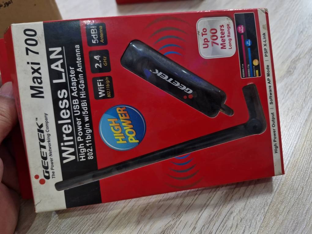 کارت شبکه GEETEK MAXI 700 ، یک کارت شبکه USB قدرتمند است که از استاندارد بی سیم 802.11b/g/n پشتیبانی کرده و دارای آنتن قدرتمند High Gain با قدرت 5dBi است. این کارت شبکه از سرعت انتقال بی سیم تا 150 مگابیت بر ثانیه پشتیبانی می کند. از مزیت های این کارت شبکه ،آنتن 5dBi و توان بالای ارسال سیگنال در محدوده وسیع 28dBm هست که به کاربر کمک میکند تا به راحتی به شبکه در محدوده وسیعی دسترسی پیدا کند که توسط کارت شبکه معمولی این امکان وجود ندارد.