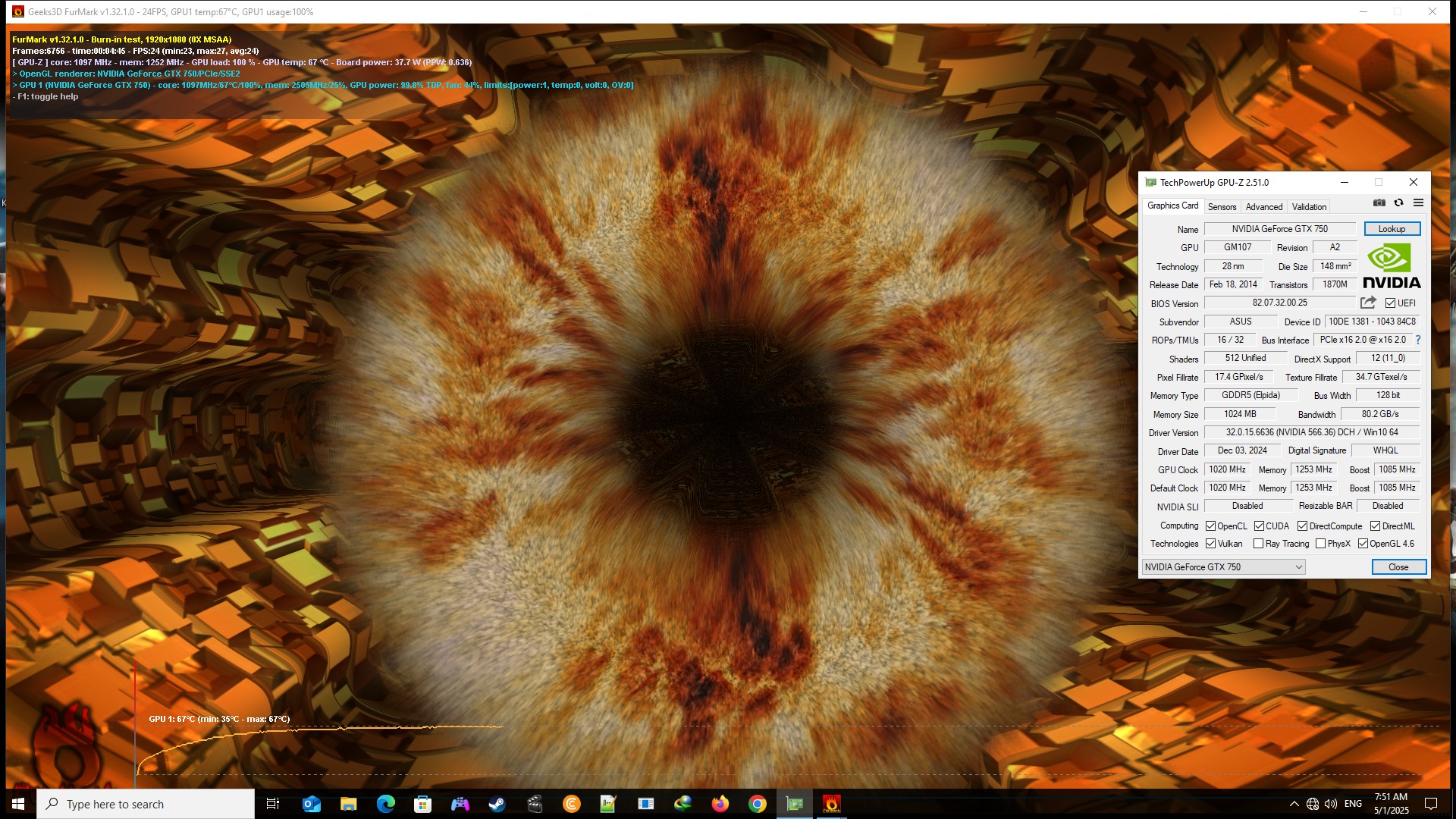 نتیجه تست فورمارک که نهایت فشار وارد شده به گرافیک در حدود 5 دقیقه و رزولیشن 1920*1080 FHD که در عکس آخر قرار داده شده (مشاهده فرمایید) دما کارت نهایت به 67 درجه میرسه که نشان از سلامت گرافیک میباشد