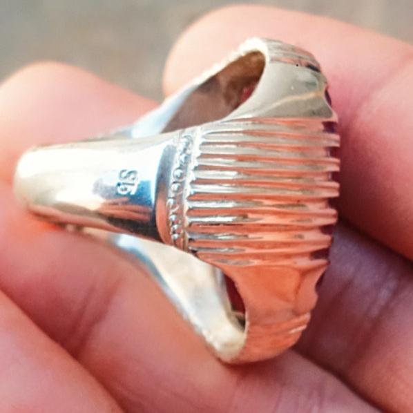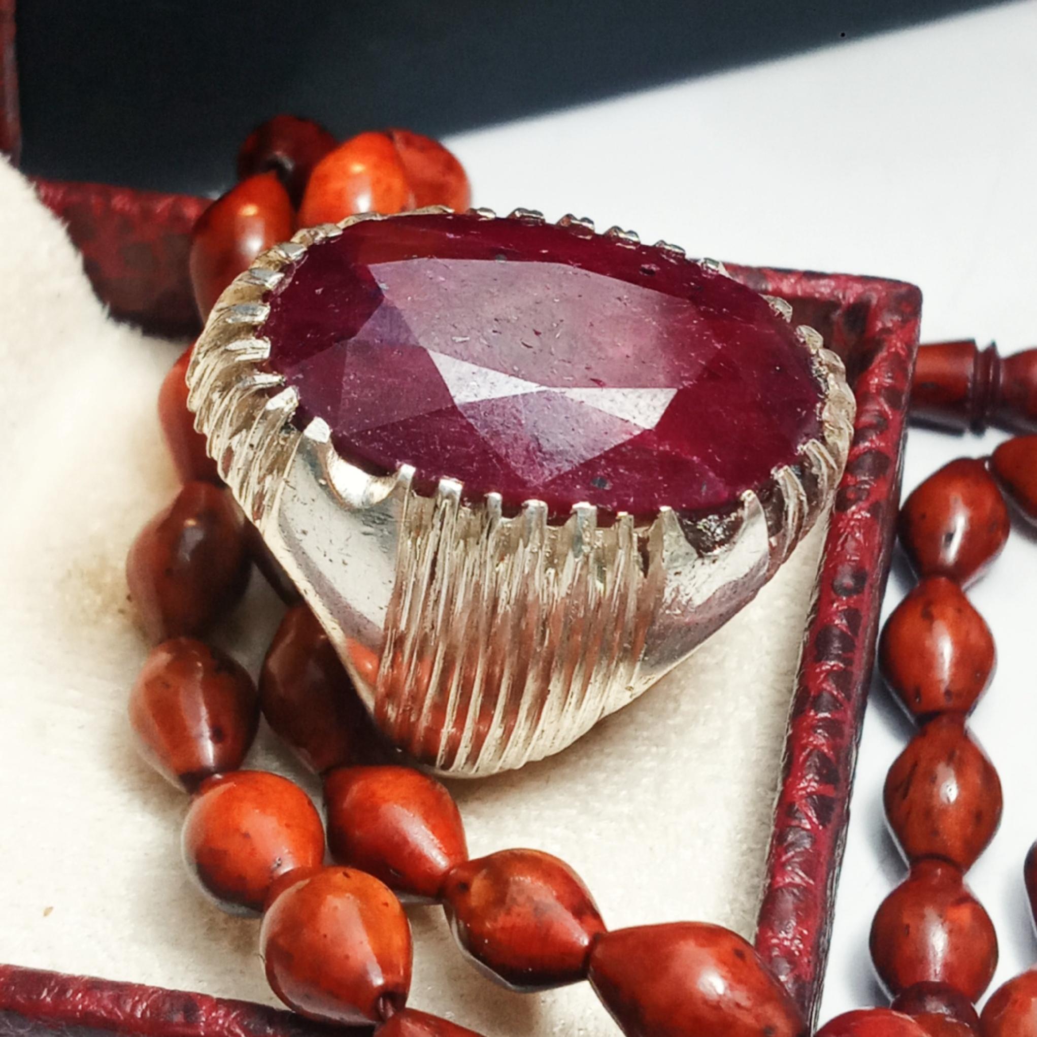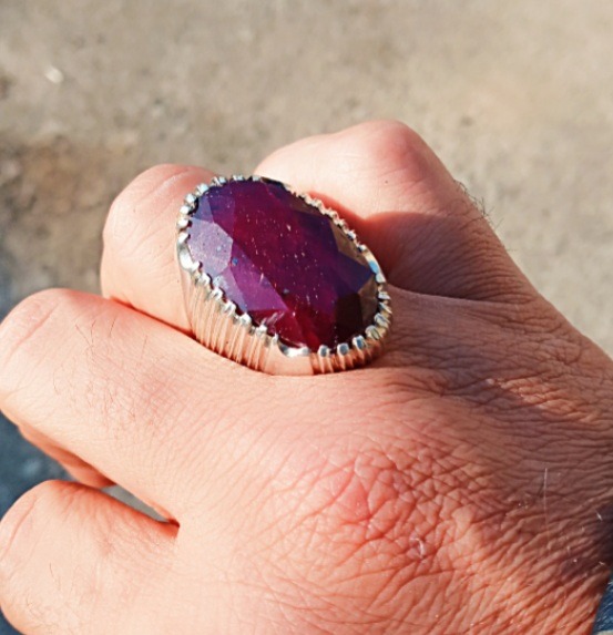 انگشتر زیبا خاص و شیک یاقوت دونه اناری سنگ کانلا معدنی و طبیعی زغال دار و اصل