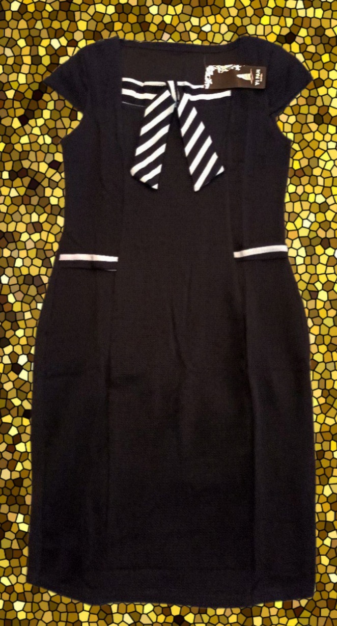 پیراهن یقه پاپیونی بالای زانو حالت کشی و بافت مانند مناسب فصل پاییز و زمستان . برای اندامهای سایز 34،36،38،40