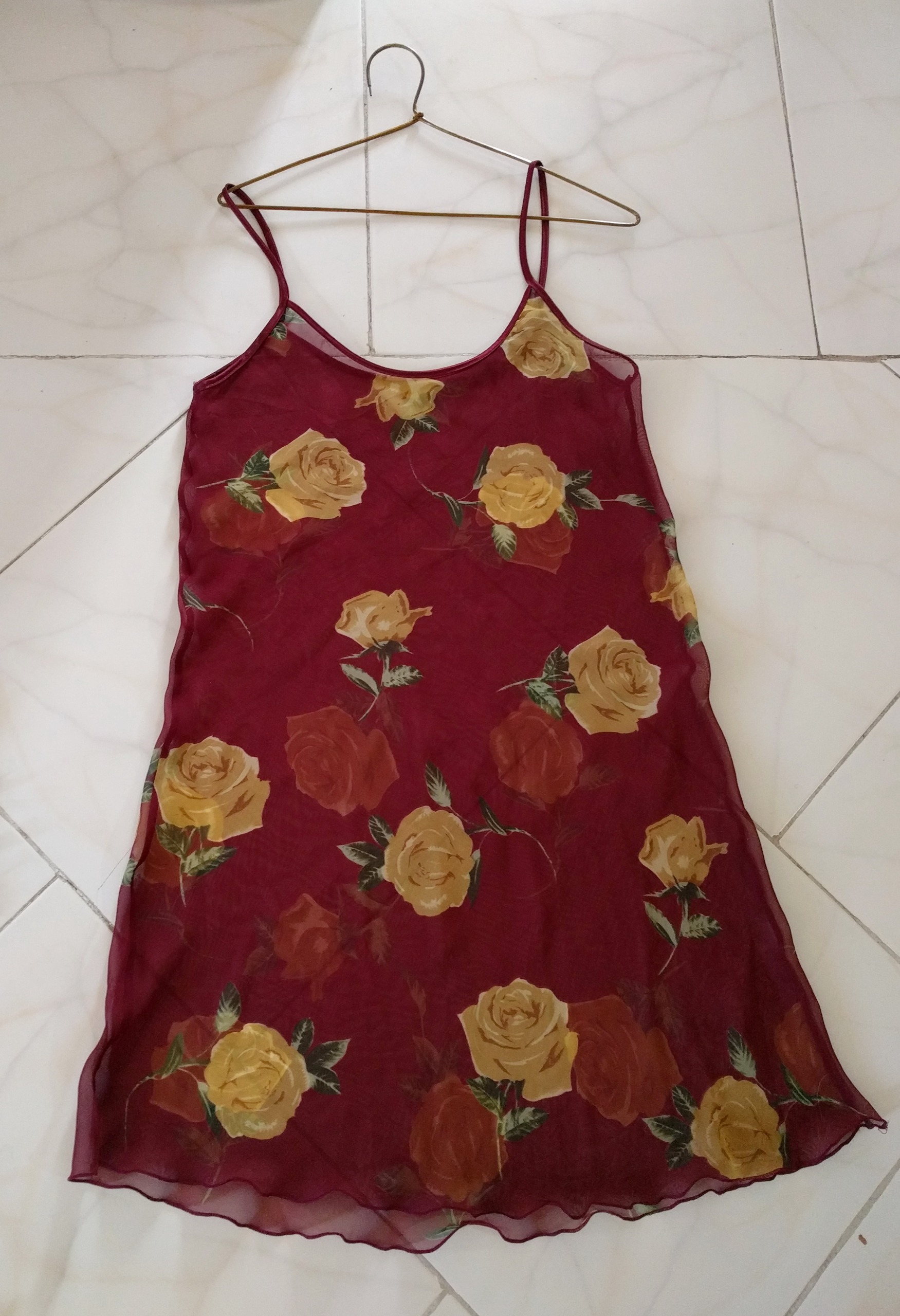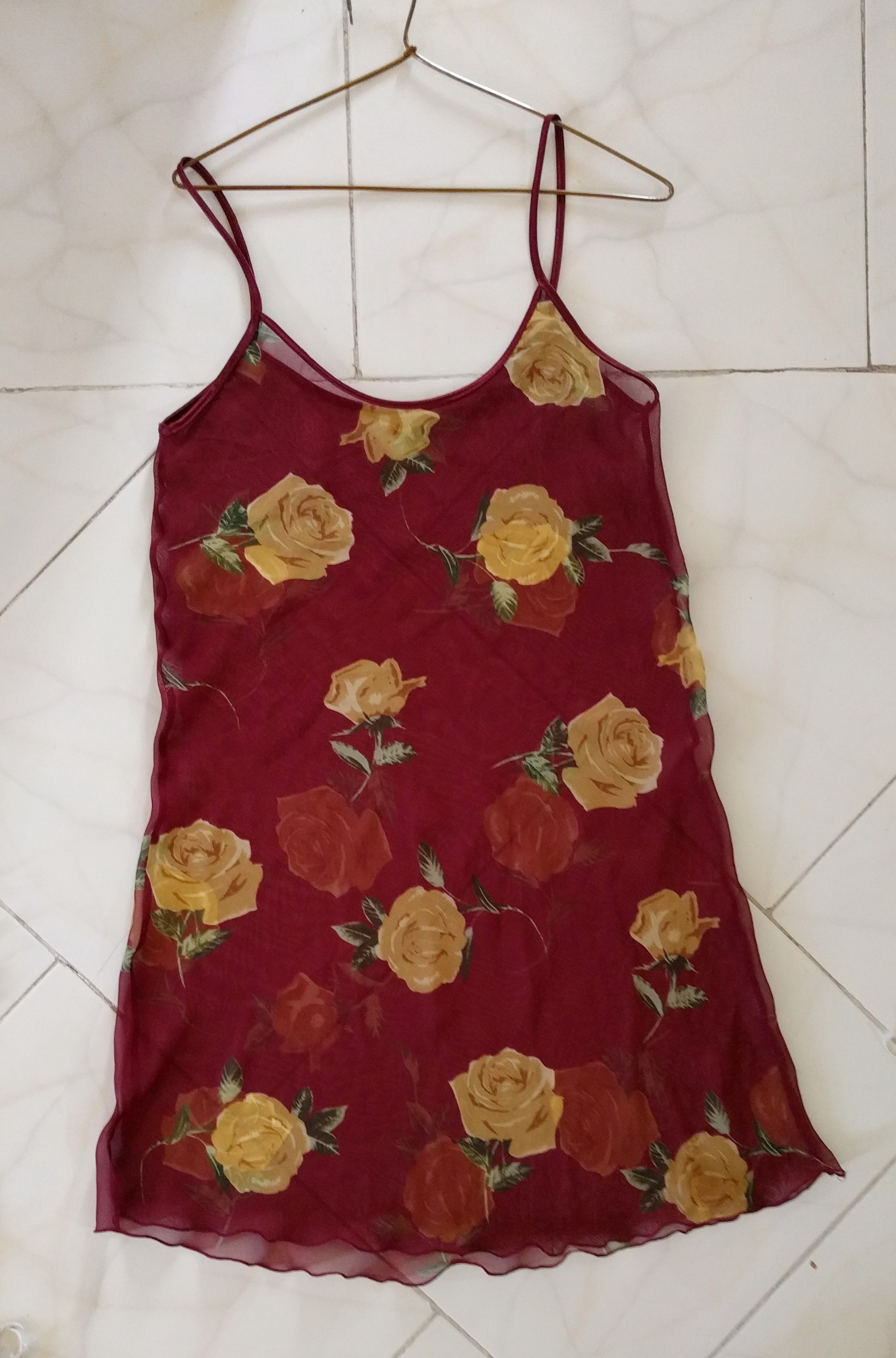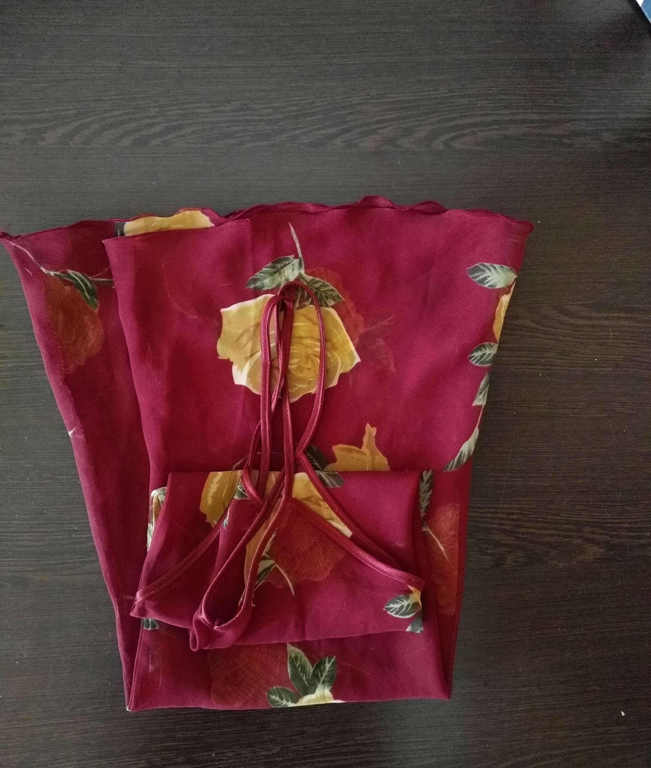 لباس خواب حریر زرشکی گلدار