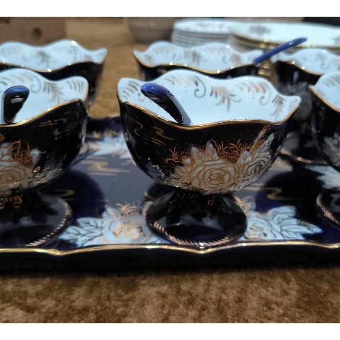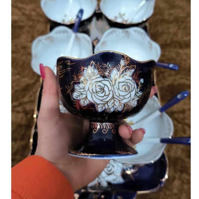 6عدد بستنی خوری زیبای گل برجسته مارک چک با سینی زیرش همگی نو و ابنخورده هستن