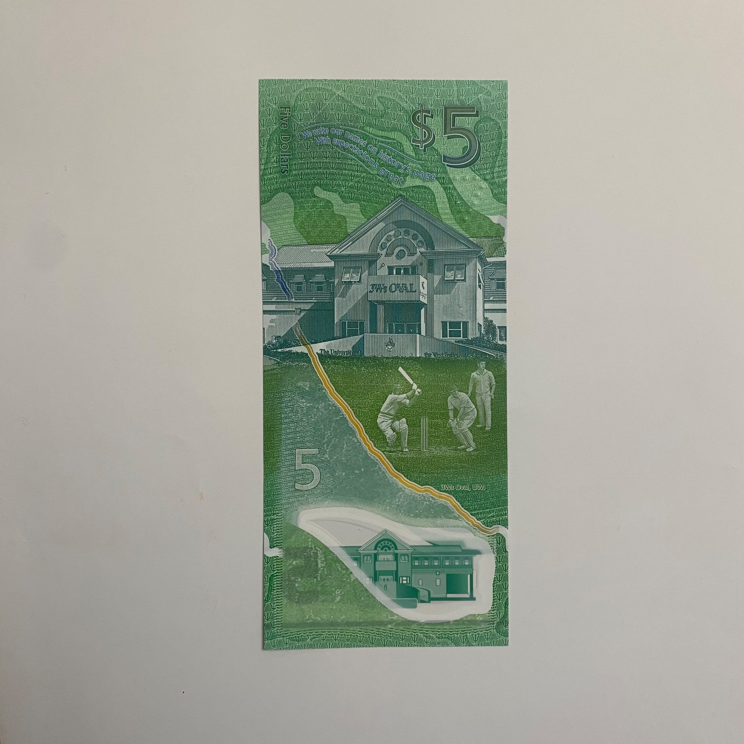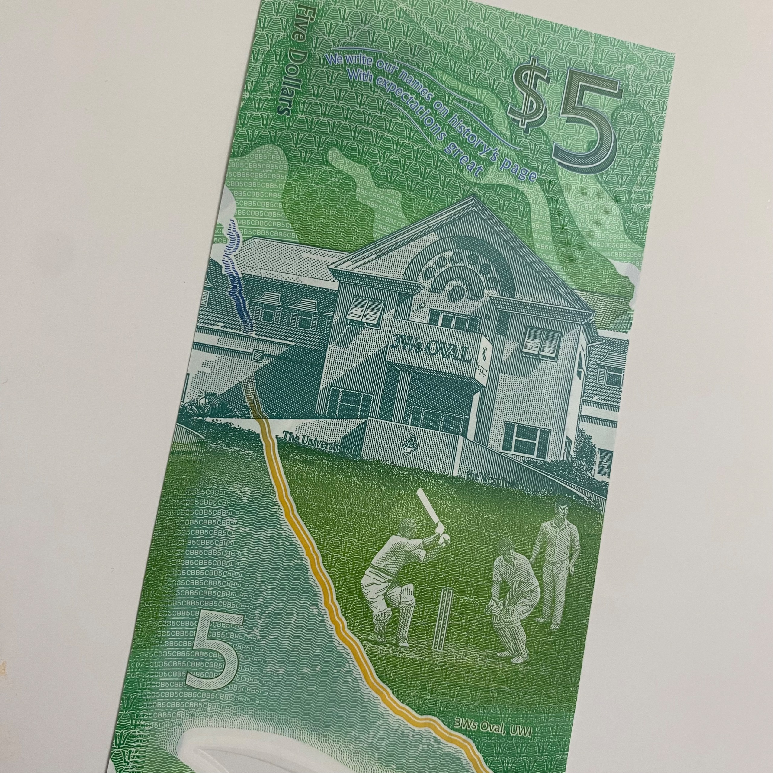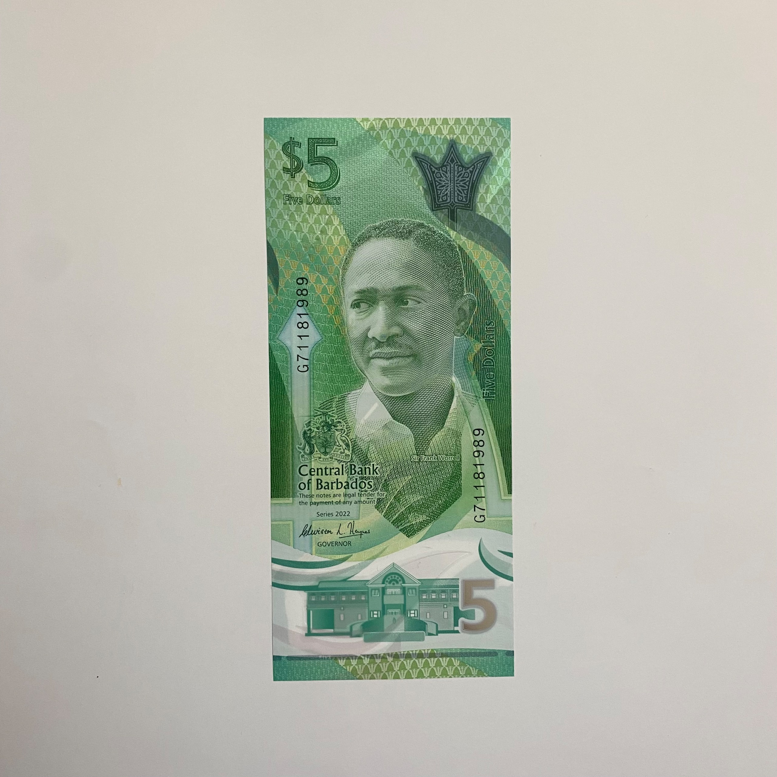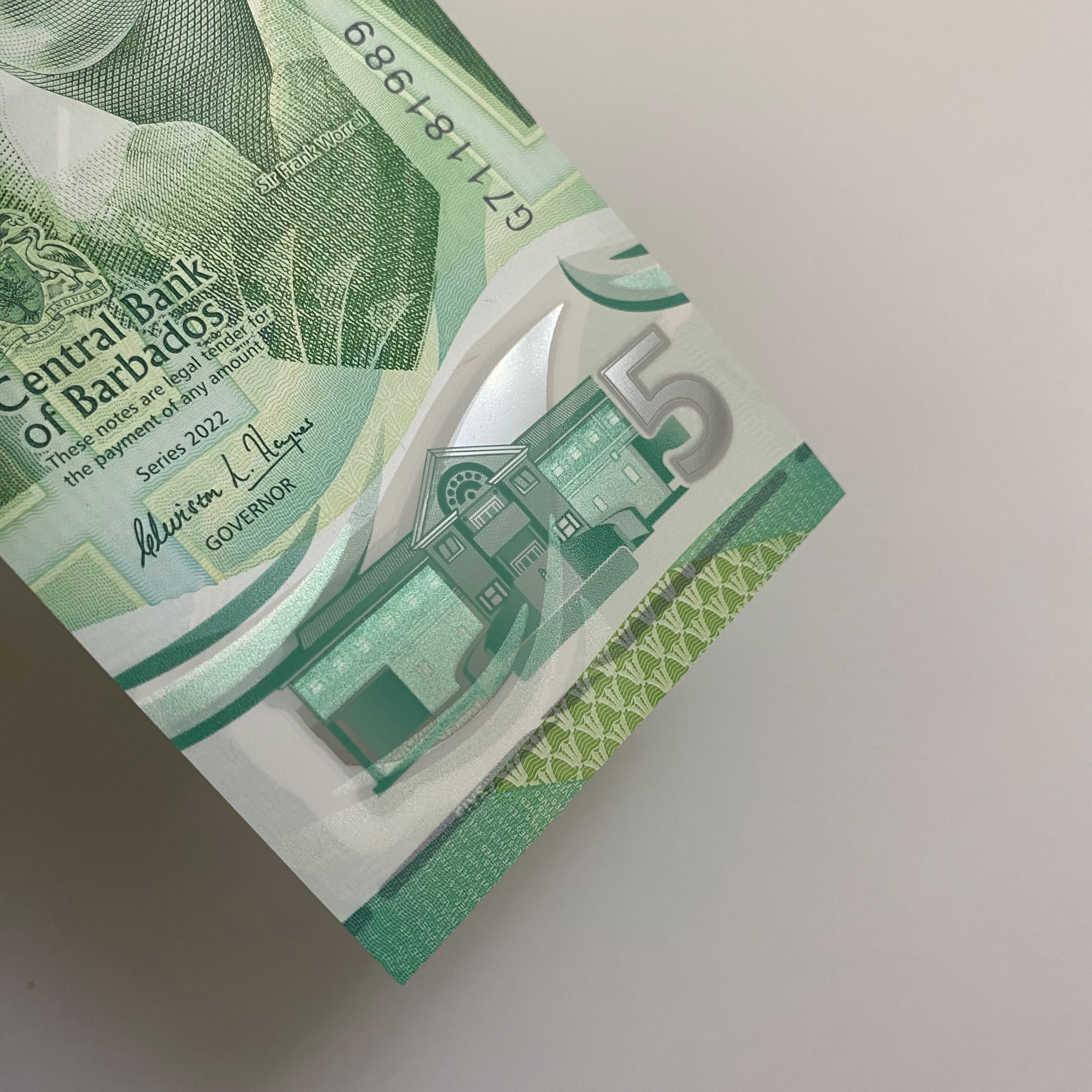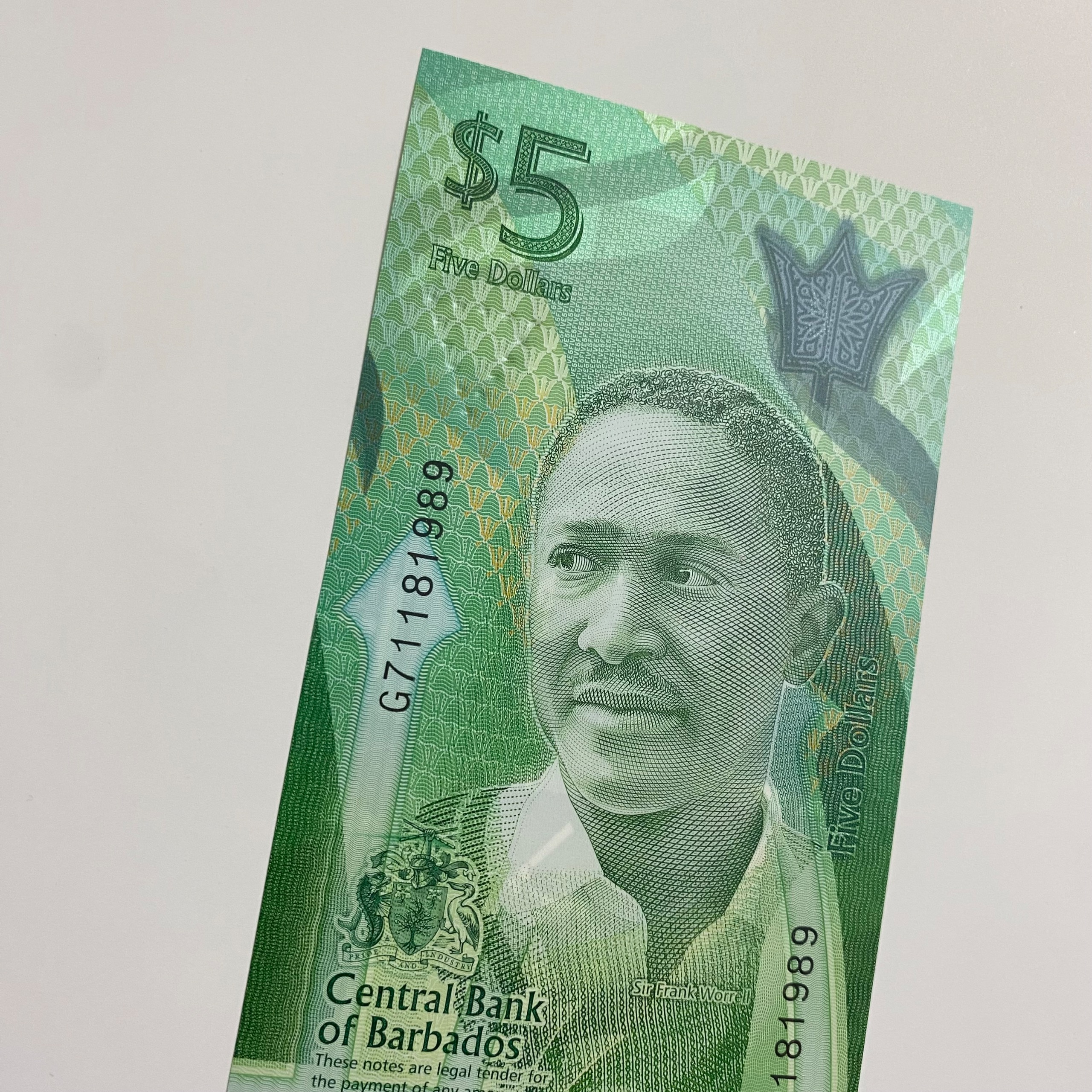 اسکناس پنج دلار باربادوس با کیفیت بانکی، پلیمری و بسیار زیبا. تصویر