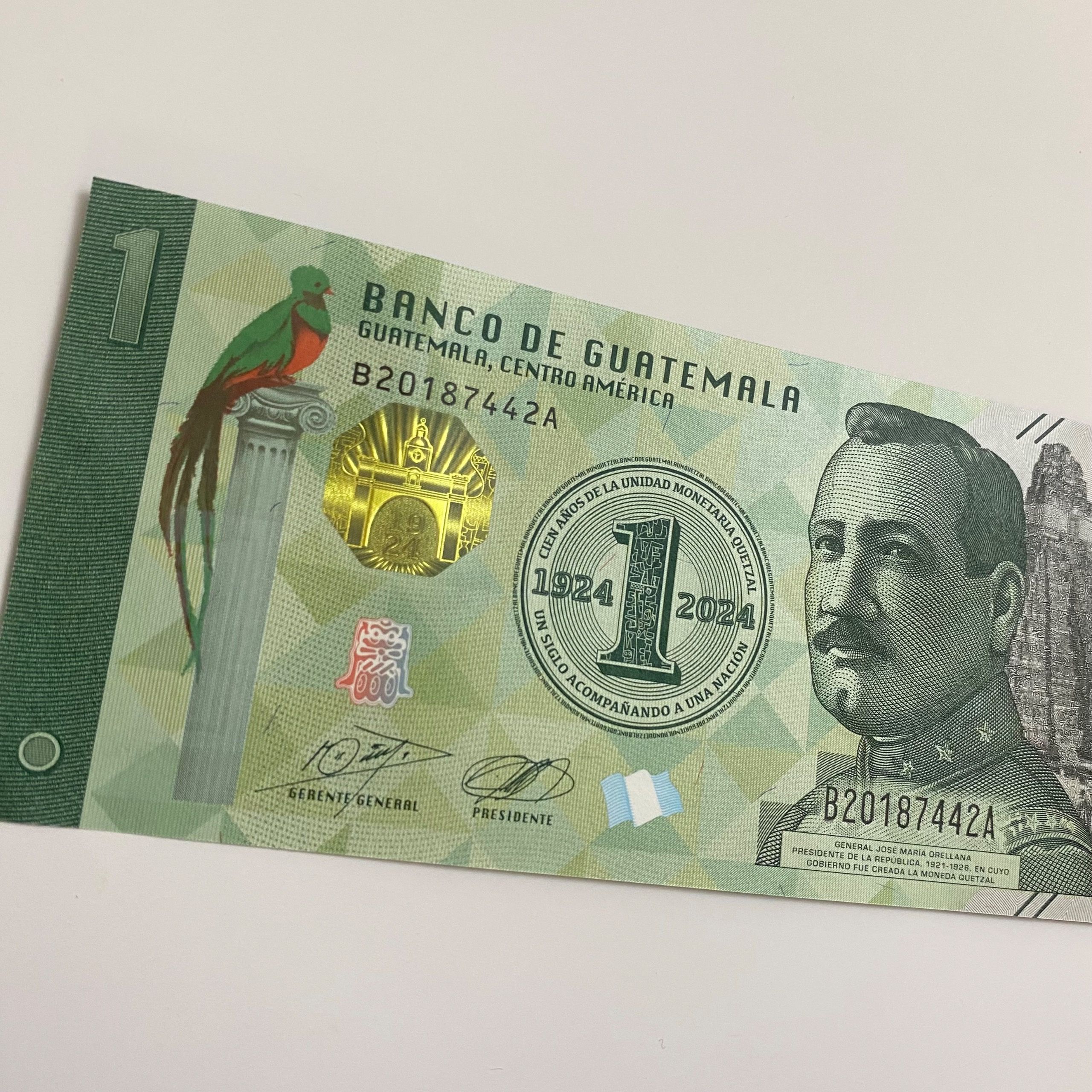 اسکناس یک کوتزال گواتمالا سری جدید 2023 با تصویری از خوزه ماریا پینتو، رهبر نظامی و سیاستمدار گواتمالایی.