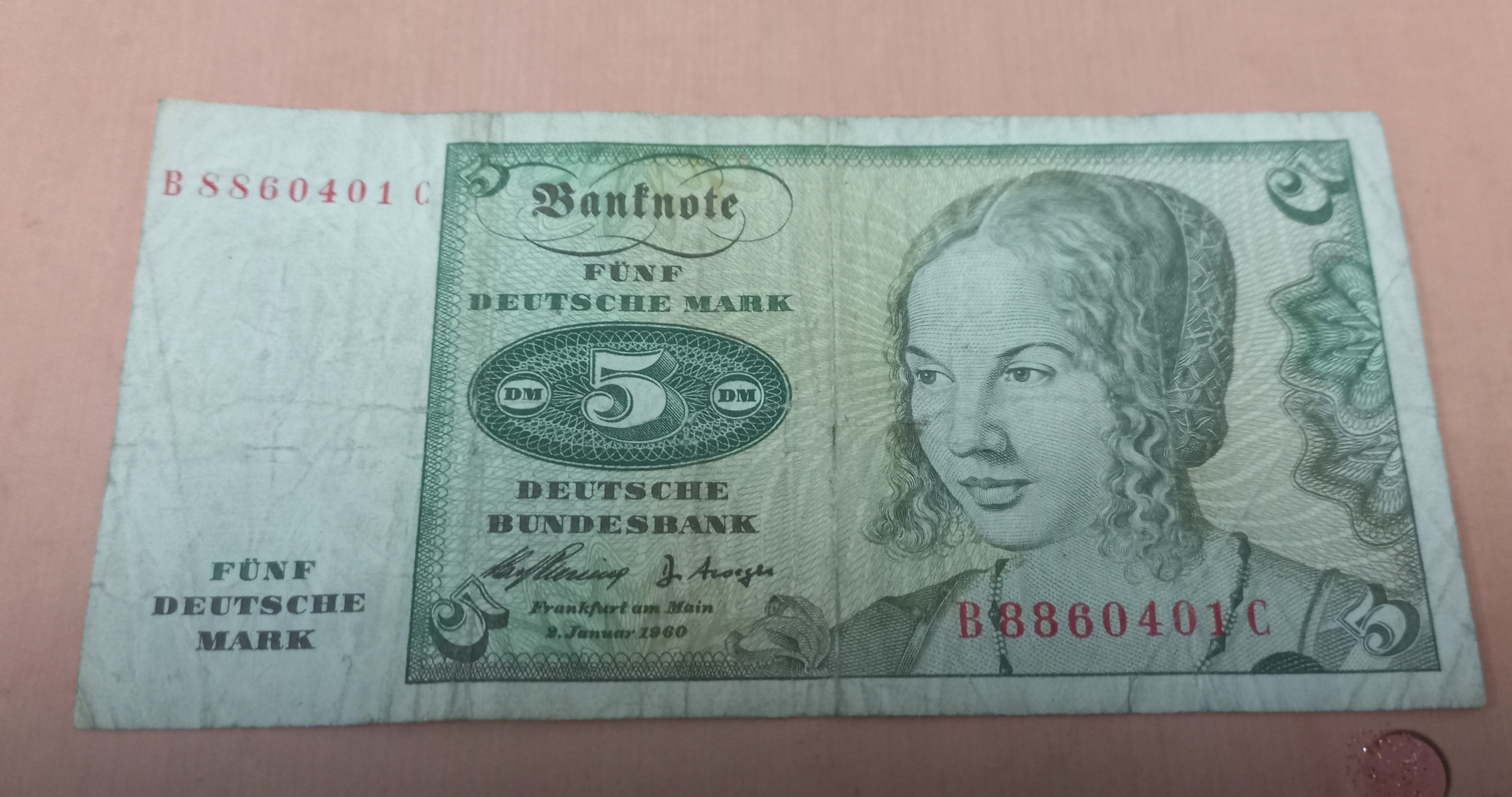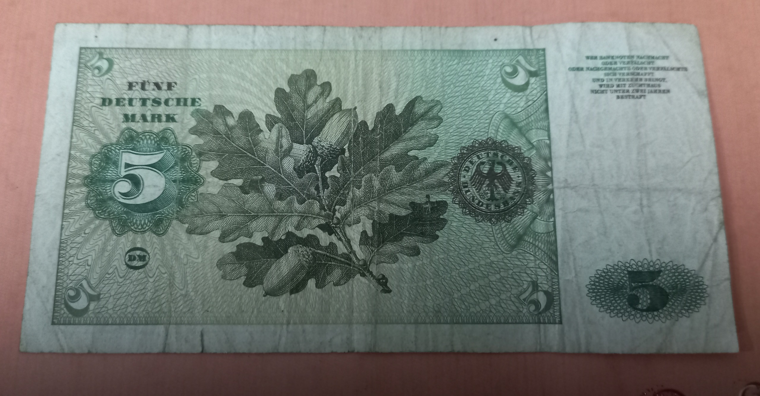 اسکناس کمیاب 5 مارک 1960 آلمان غربی کیفیت مطابق تصویر قیمت 500 تومان ارسال رایگان .