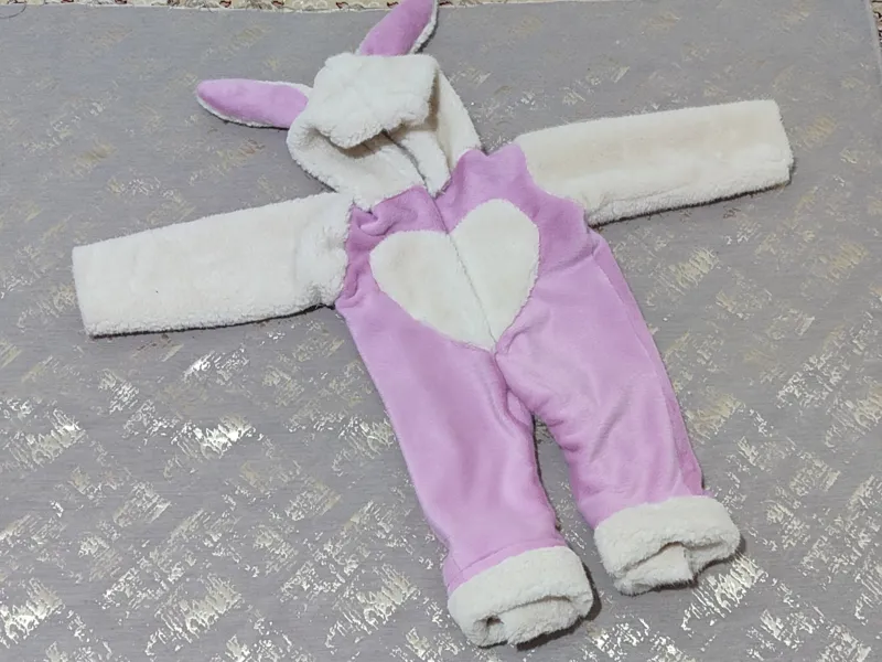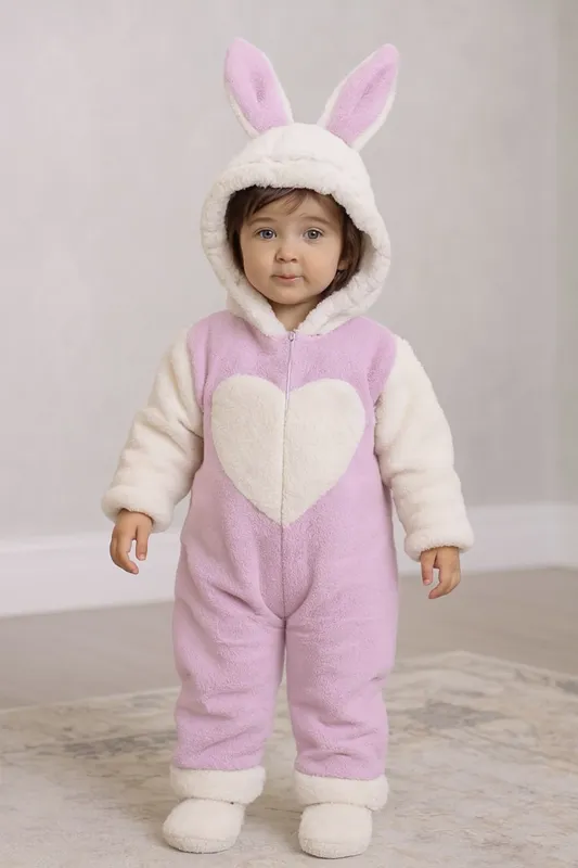 طراحی فانتزی با گوشهای خرگوشی، قلب سفید روی سینه، و پارچهای مخملی که نوازش میکنه پوست لطیف کودک.