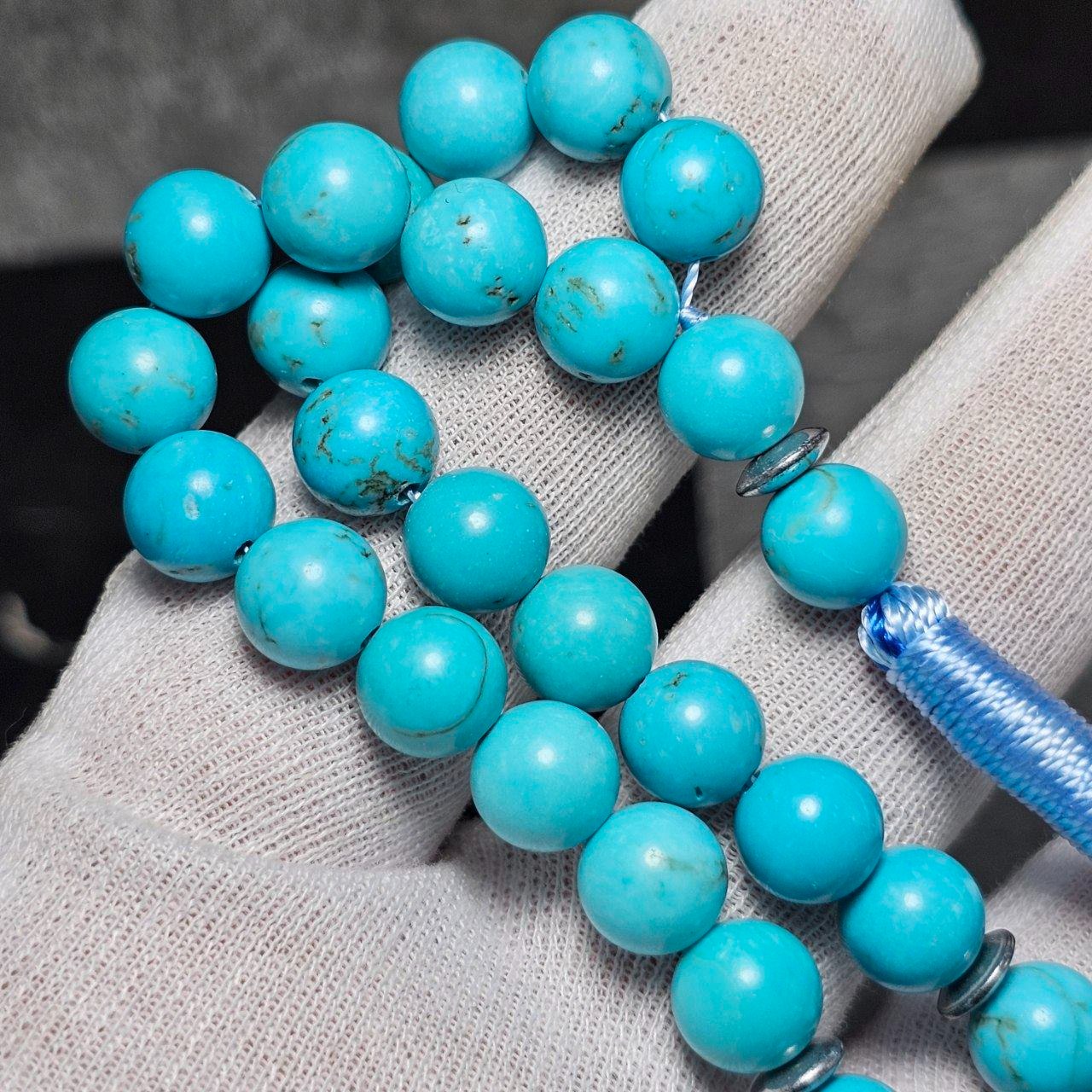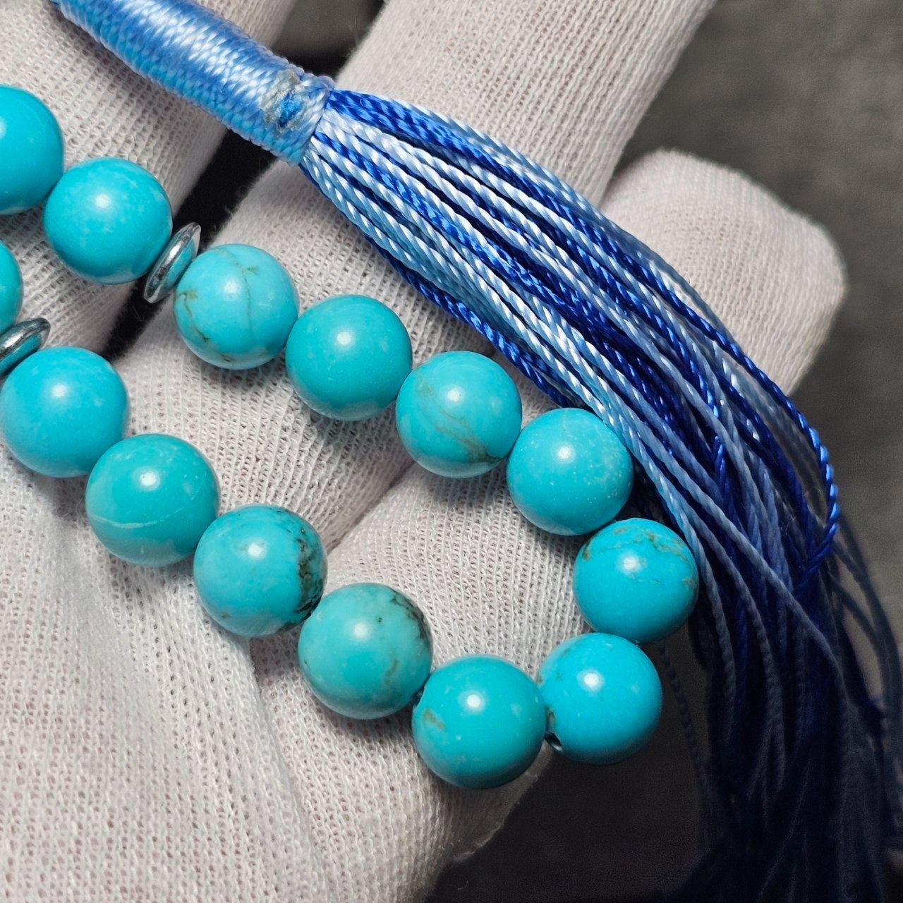 تسبیح 33 دانه سنگ فیروزه آبی معدنی کد 10512