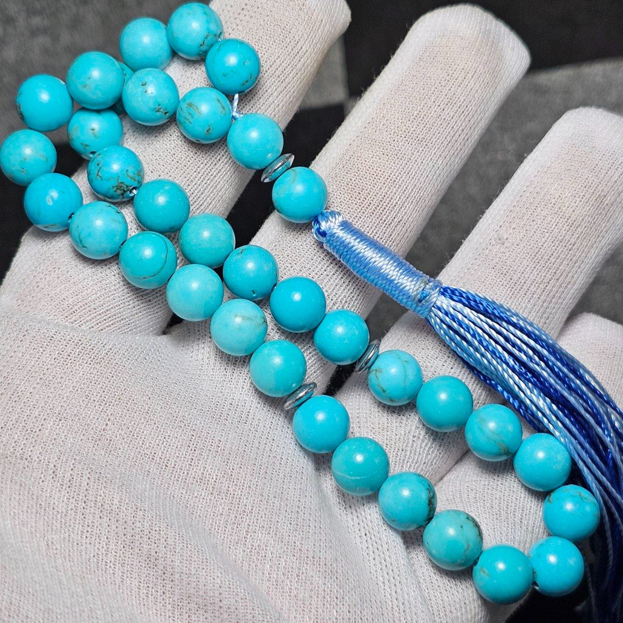 تسبیح 33 دانه سنگ فیروزه آبی معدنی