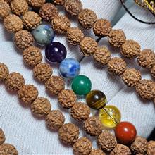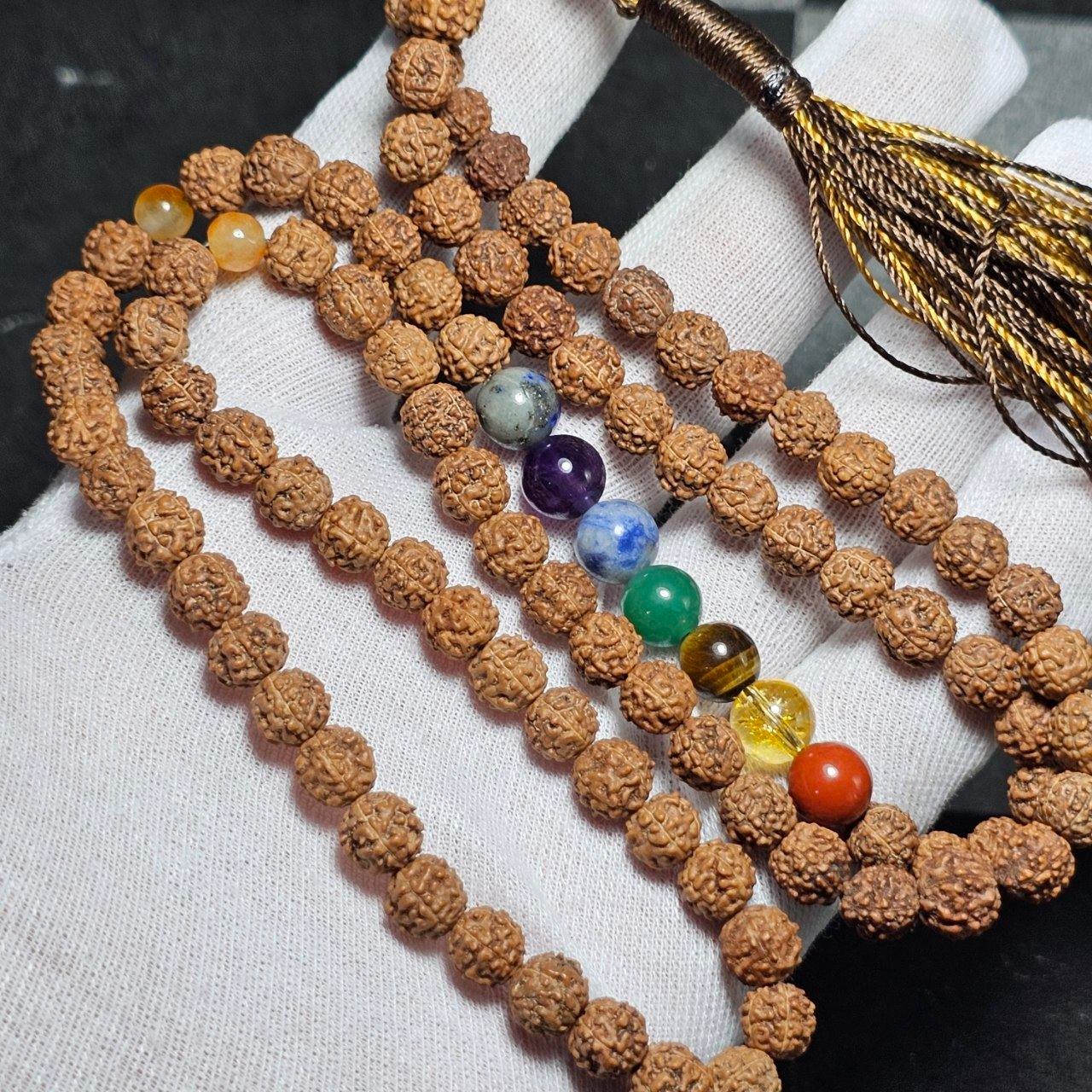 تسبیح 101 دانه رودراکشا و هفت سنگ ( هفت مراکز بدن ) معدنی