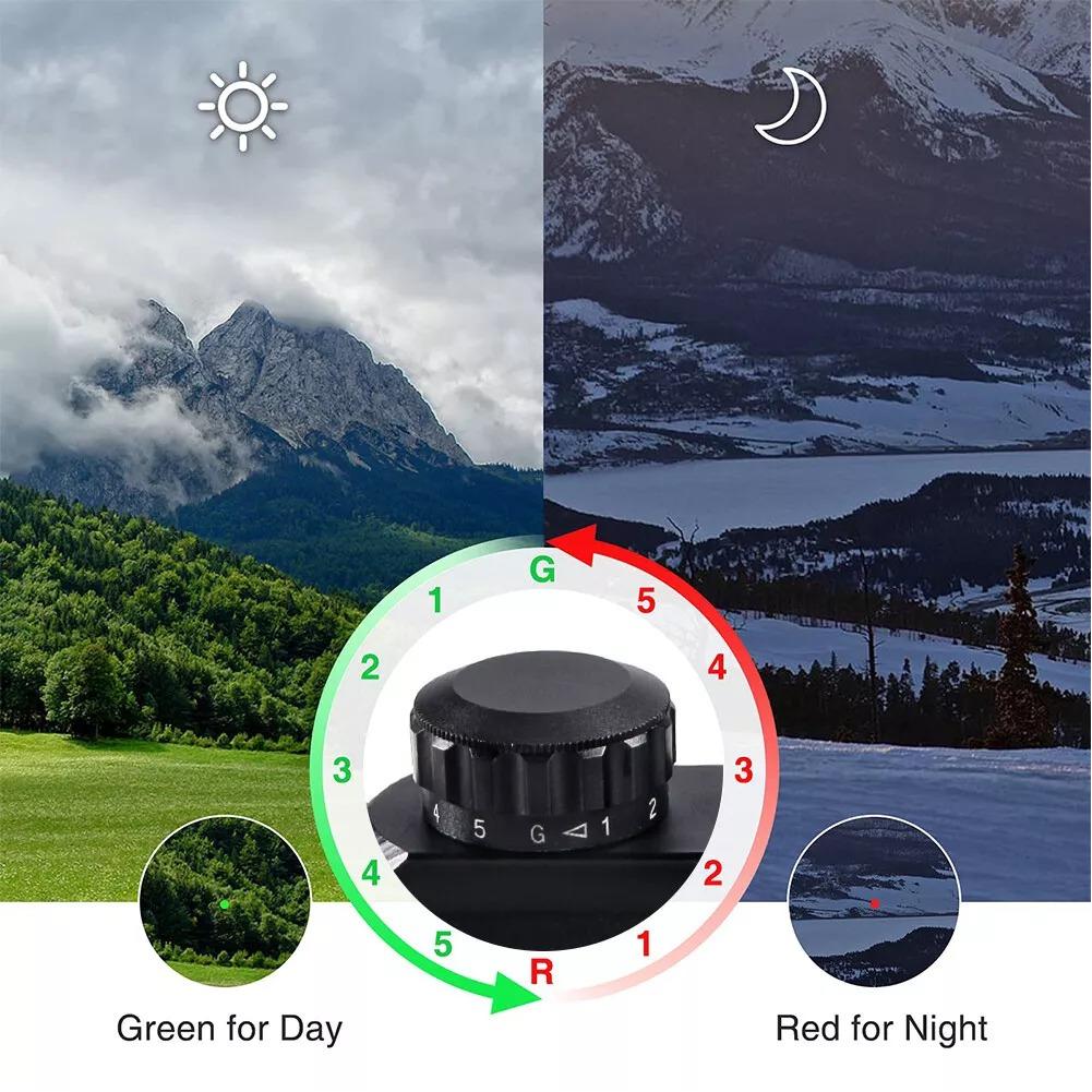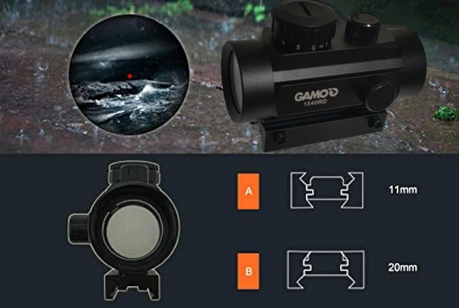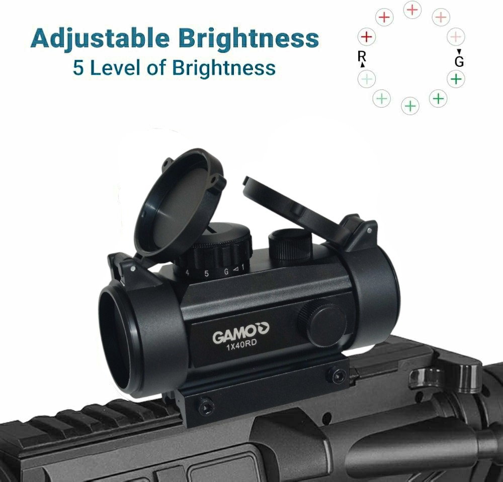 رد دات 30×1 GAMO با نقطه نوری قرمز و سبز رنگ با قابلیت تنظیم شدت نور 5 مرحله ای، مناسب جهت انواع تپانچه ها، تفنگ های بادی و سلاح های شکاری.
