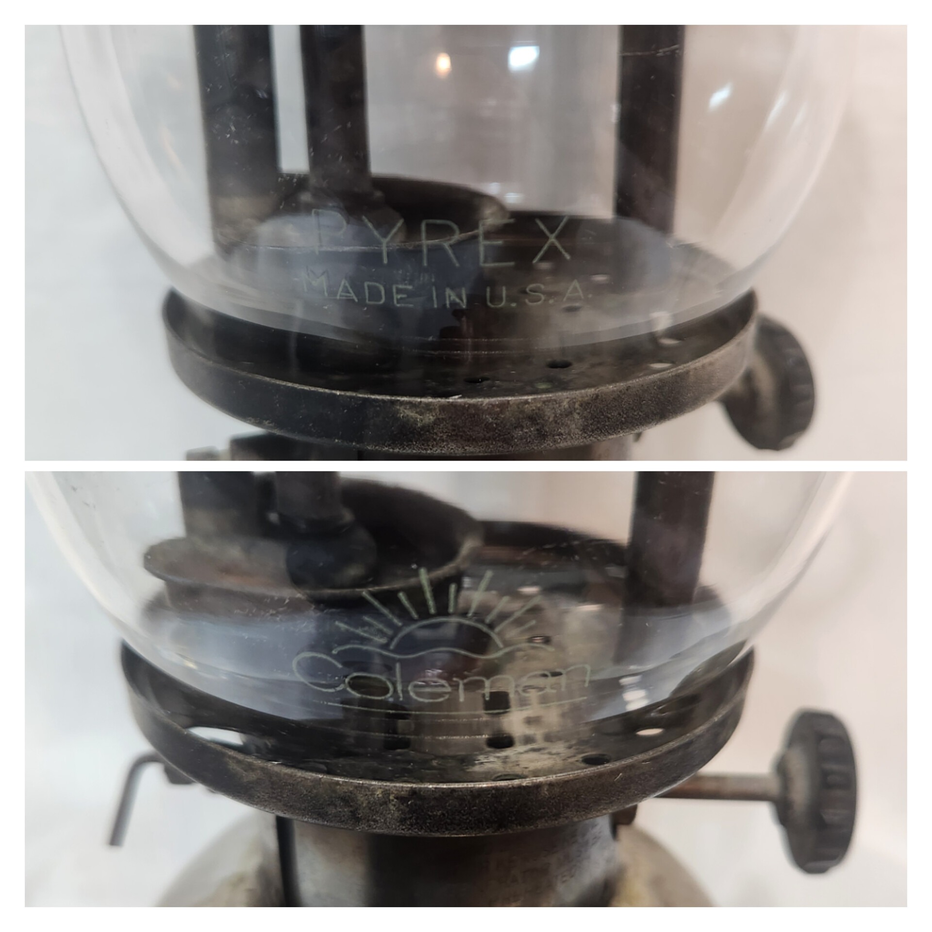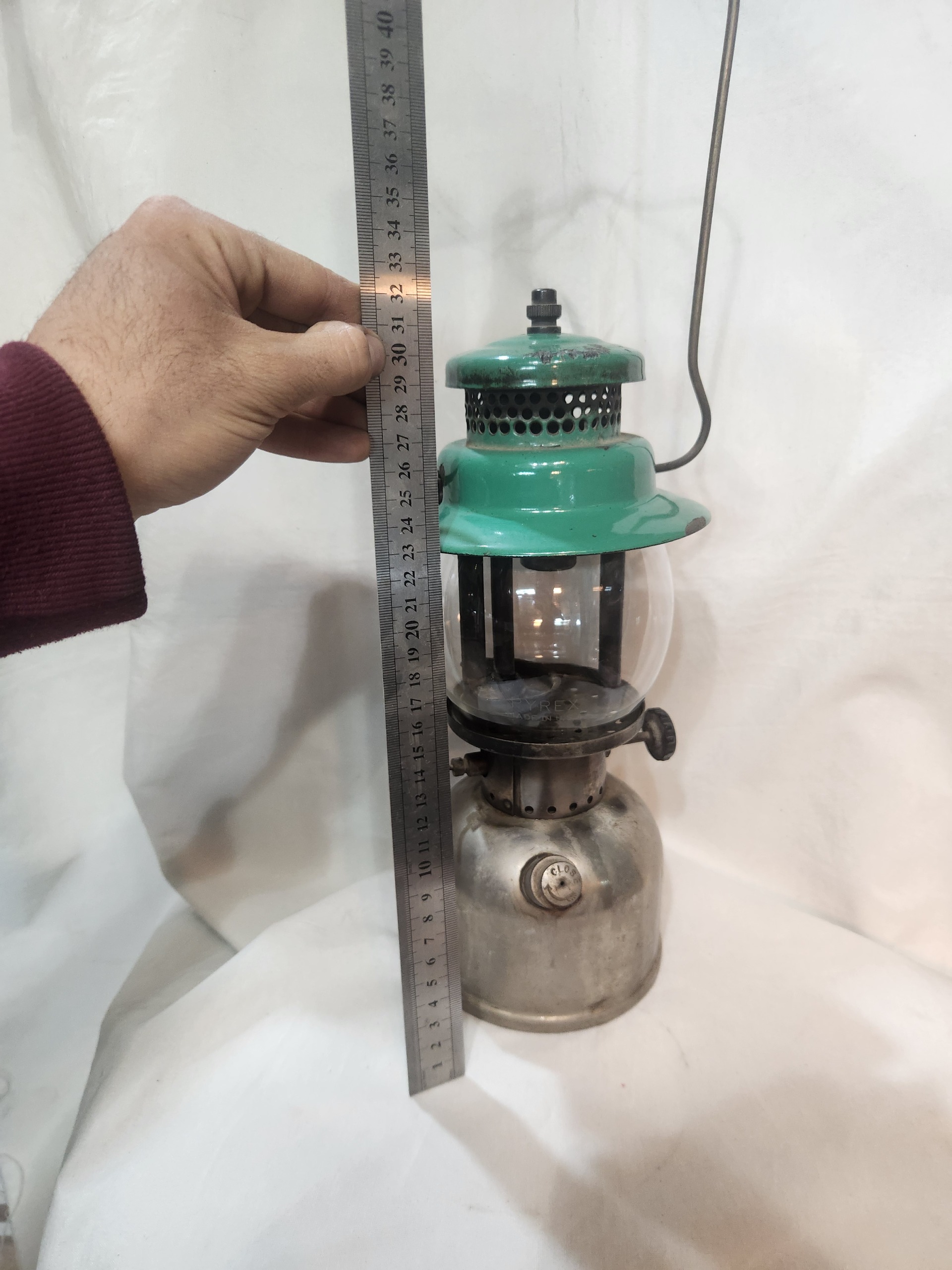 چراغ توری کلمن کمیاب با شیشه فابریک مارک کلمن