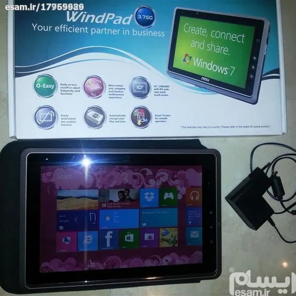 تبلت در کارتن فابریک خود به همراه داک در کارتن فابریک خود ارسال می شود + یک ویندوز 7 با جیستر در کاور مخصوص خود.