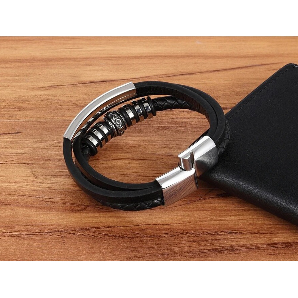 دستبند چرمی مردانه، یکی از محبوبترین جواهرات مردانه است که به عنوان یک جزء از مد و فشن مردانه به شمار میرود. اگر به دنبال یک کادوی ویژه برای ولنتاین، یا کادویی برای دوست پسر خود هستید، یک دستبند چرمی مردانه میتواند گزینهی بسیار خوبی باشد.دستبند چرمی، با ظاهری شیک و براق، به خوبی با سبک مردانهی امروزی هماهنگ میشود. این دستبند، میتواند یکی از جذابیتهای اصلی لباس مردانه باشد و به طور کلی، به افزایش زیبایی و جذابیت ظاهری فرد کمک میکند. ساخته شده با فولاد ضد زنگ 316 لیتری جراحی، سازگار با پوست، ضد حساسیت، آبکاری شده با روکش نقره 10 میکرونی با پوشش براق و مات.
