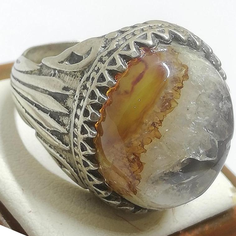 قدیمی با نگین سراسر تشکیل شده از کوارتز رتایلی نیزه ای با سه رنگ زیبا