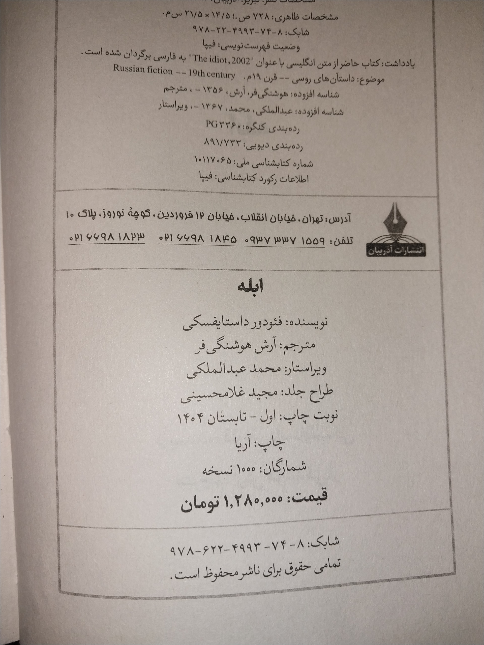 ابله نوشته داستایفسکی ترجمه آرش هوشنگی فر
