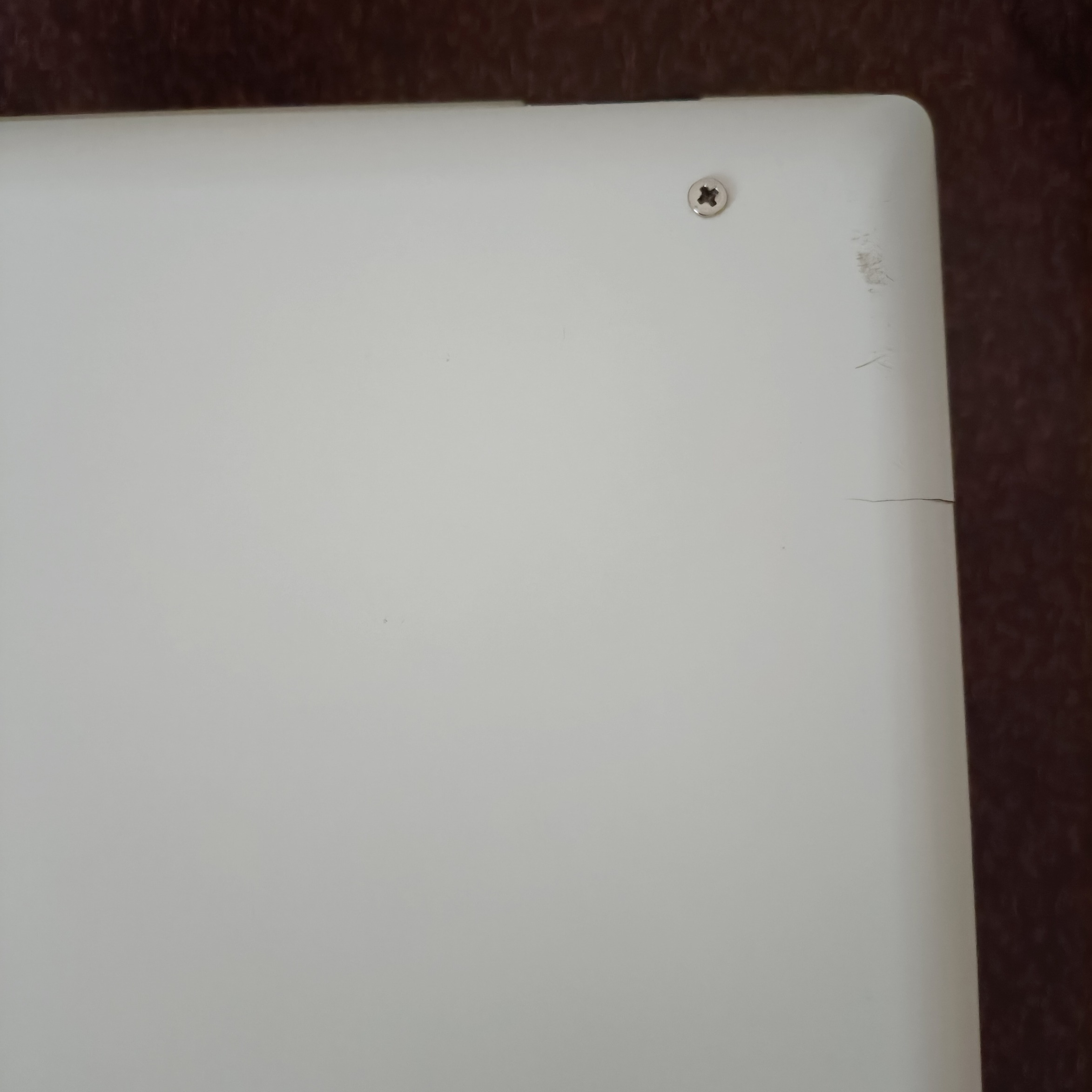 یکبار برای تعویض کابل فلت تعمیر شده. قاب رویی توسط 2 تا پیچ متفرقه چفت شده و 2 تا ترک داره که در تصاویر مشخصه. صفحه نمایش از 3 نقطه کنار هم پیکسل شده. 2 تا باتری داره که هیچکدوم کار راه انداز نیست. از نظر کارایی هیچ مشکلی نداره در صورتی که SSD روش نصب بشه چند سال راحت جواب میده.