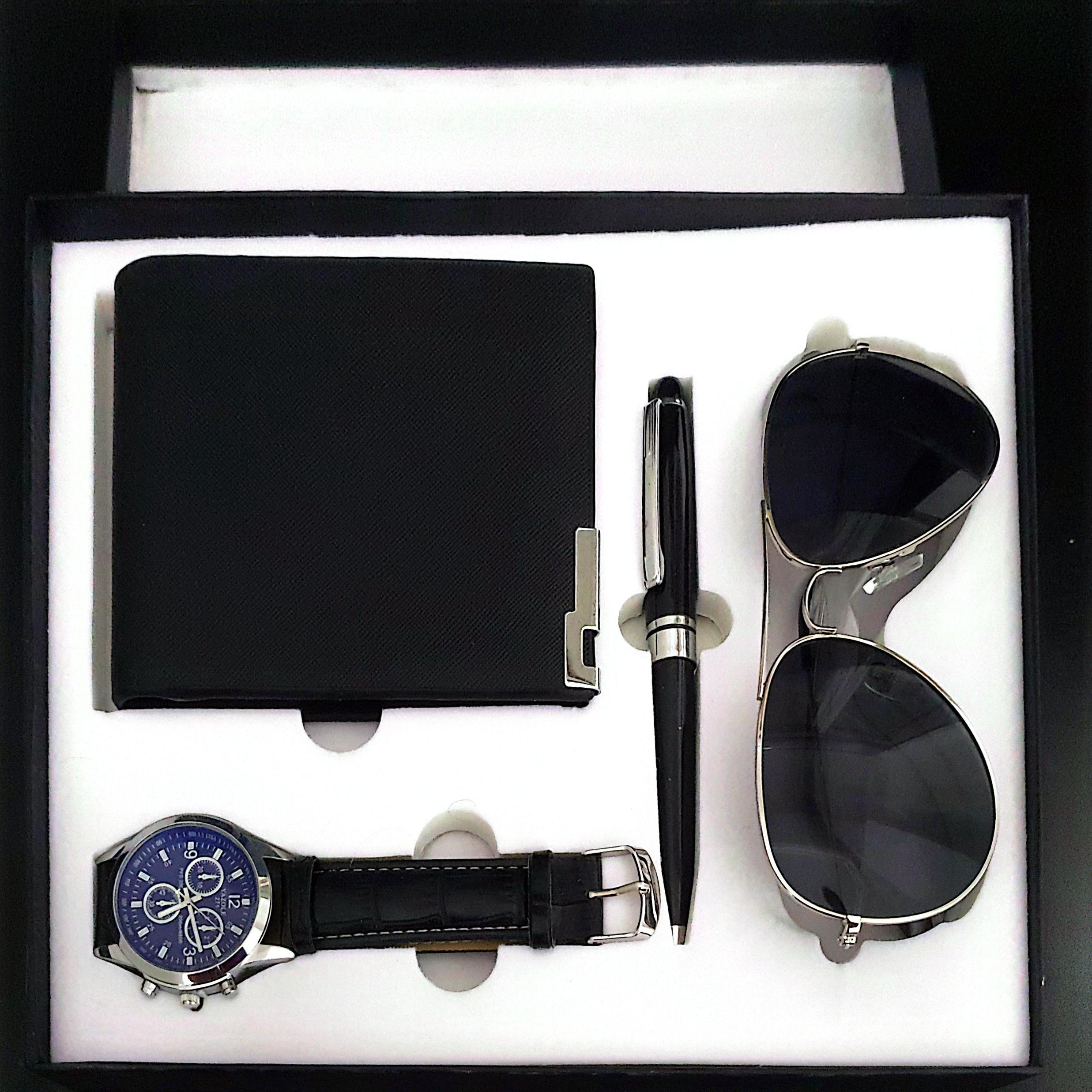 این ست ها شامل ساعت با بند چرم مصنوعی عینک کیف پول با چرم مصنوعی