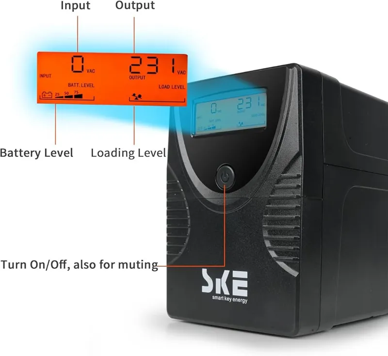 صفحه نمایش LCD هوشمند: نظارت بر ولتاژ ورودی/خروجی، ظرفیت باتری و وضعیت بارگذاری در زمان واقعی. در صورت عدم نیاز می توان آن را خاموش کرد.