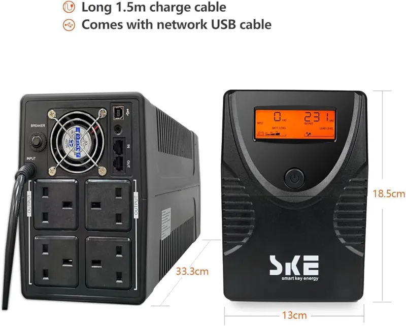منبع تغذیه بدون وقفه: هنگام تعویض سیستم های برق یا قطع ناگهانی برق، با حفظ اتصال کامپیوتر، روتر وای فای، مودم، منبع تغذیه بدون وقفه را فراهم می کند. 4 سوکت برای پشتیبان گیری باتری و محافظت در برابر نوسانات.
