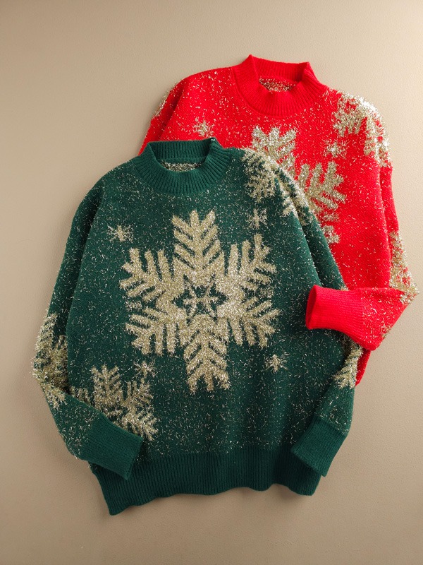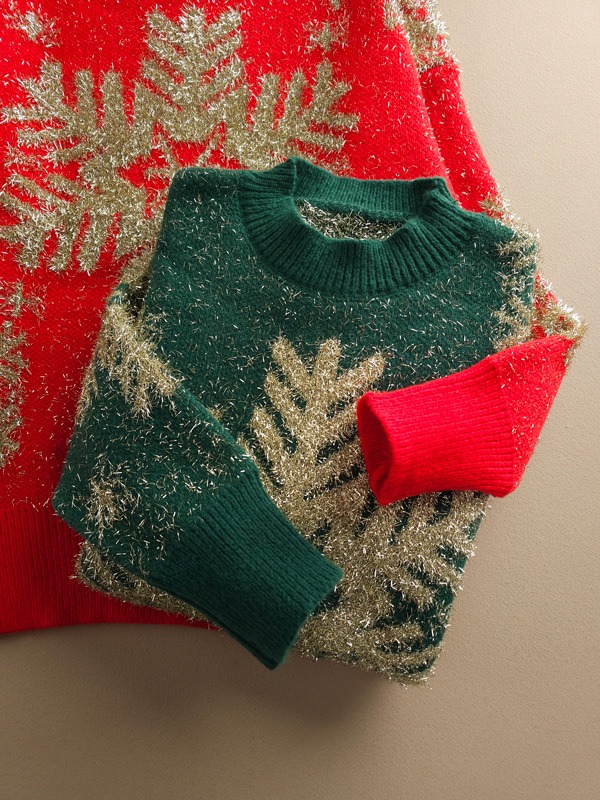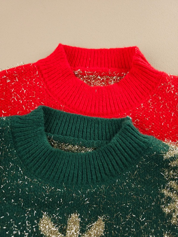 پلیور بافت لمه دار قرمز و سبز یلدایی وارداتی