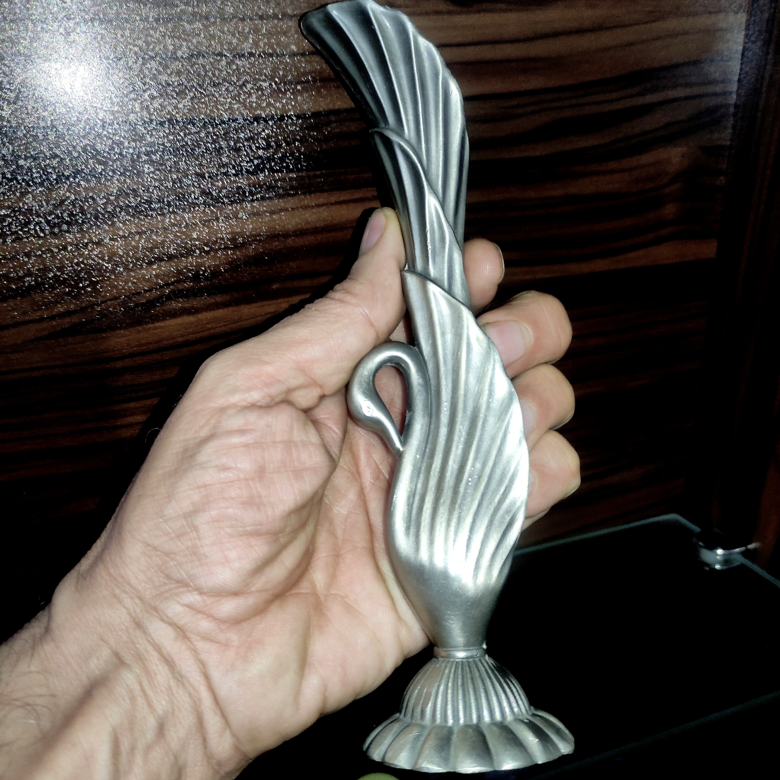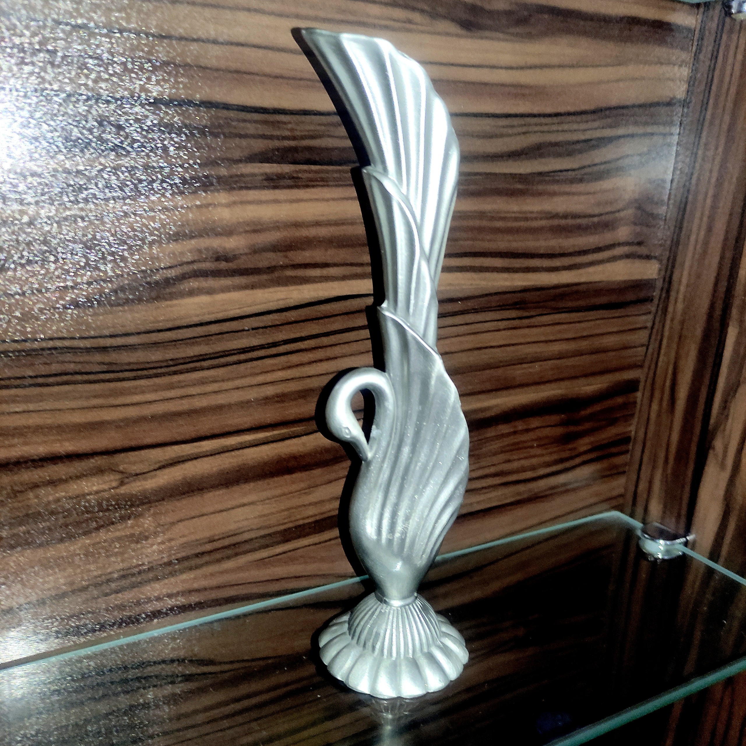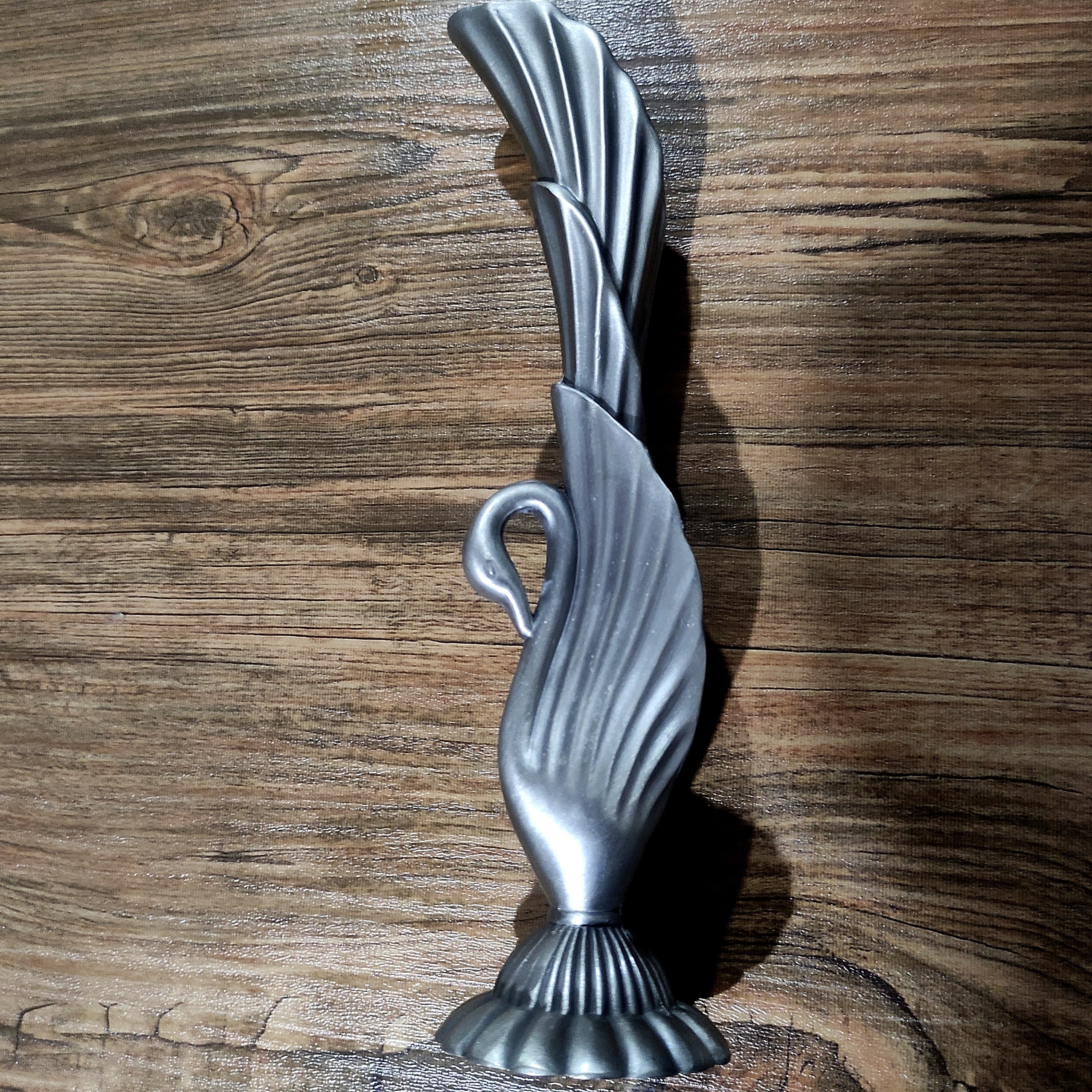 گلدان نقره فام و فلزی سنگین عتیقه برای دکوراسیون سالنهای نشیمن در رده صنایع خلاقانه دکوراسیون از جنس فلز یا گلدان گل رترو اروپایی، بسیار ظریف و شکیل و جذاب