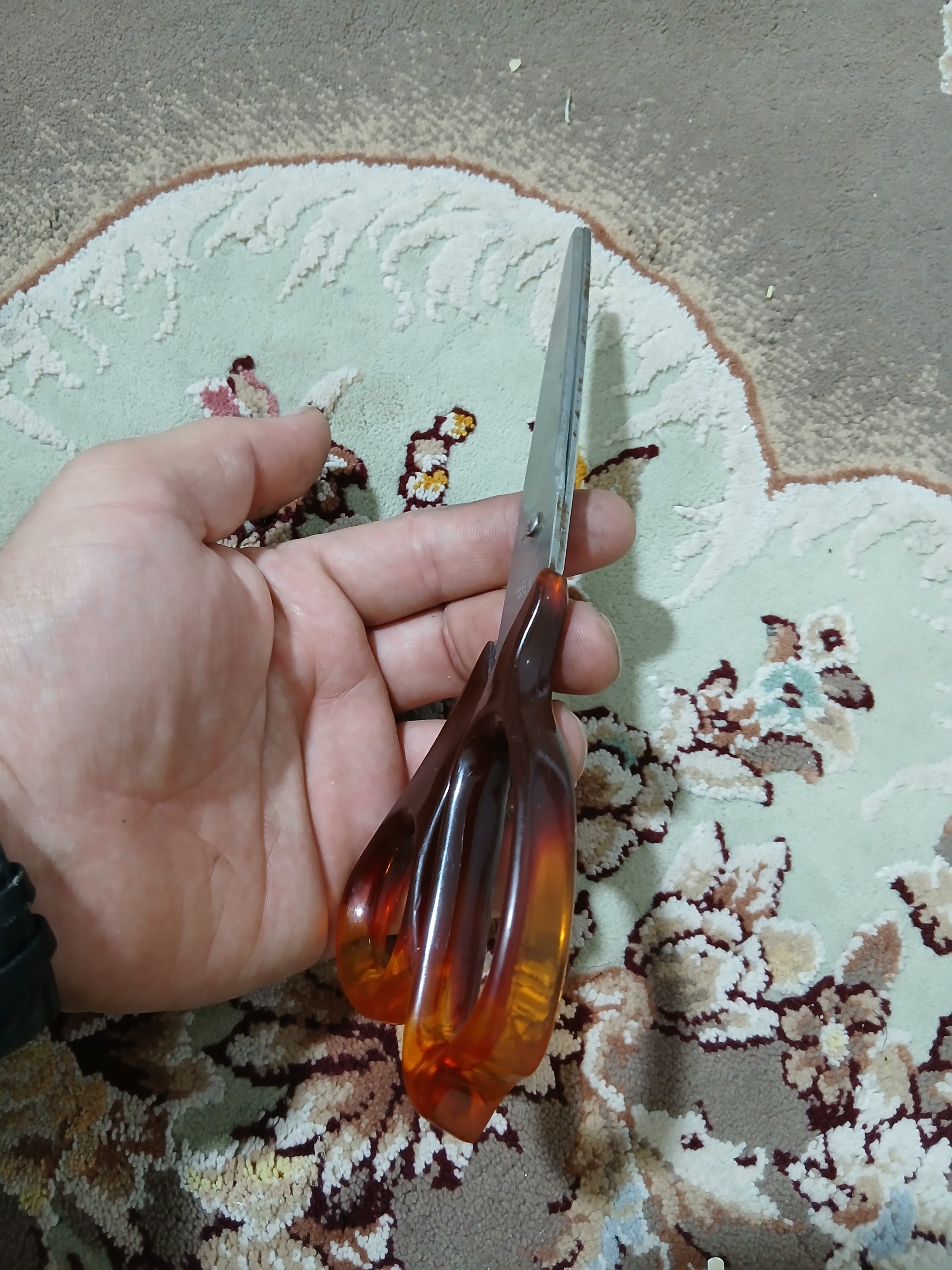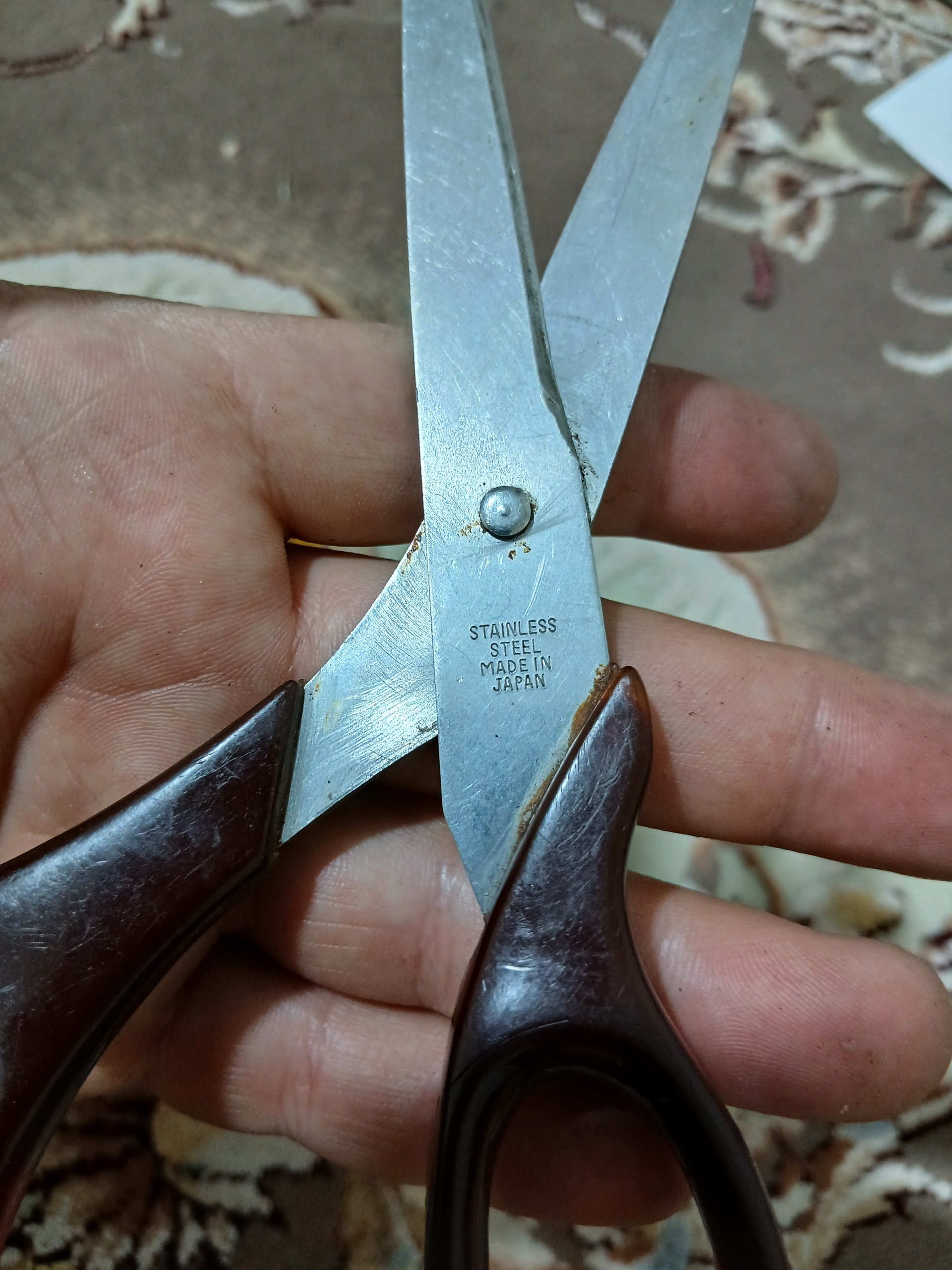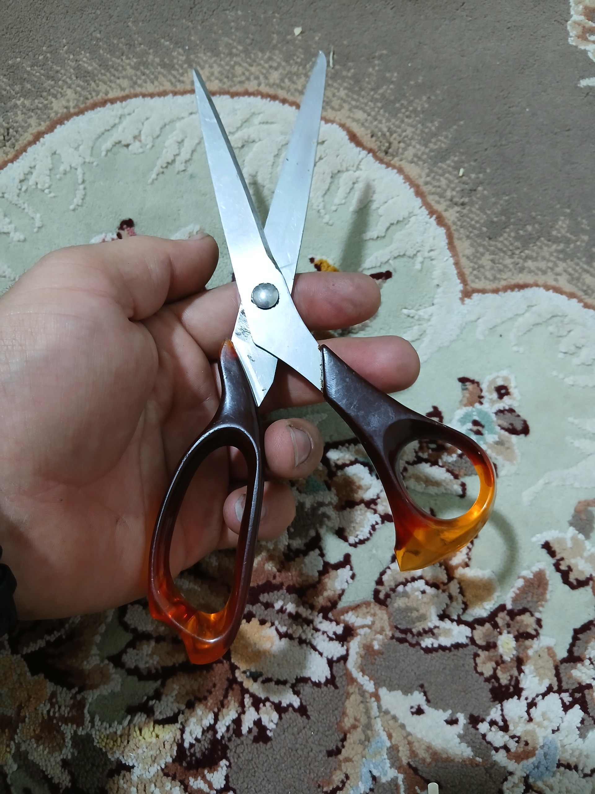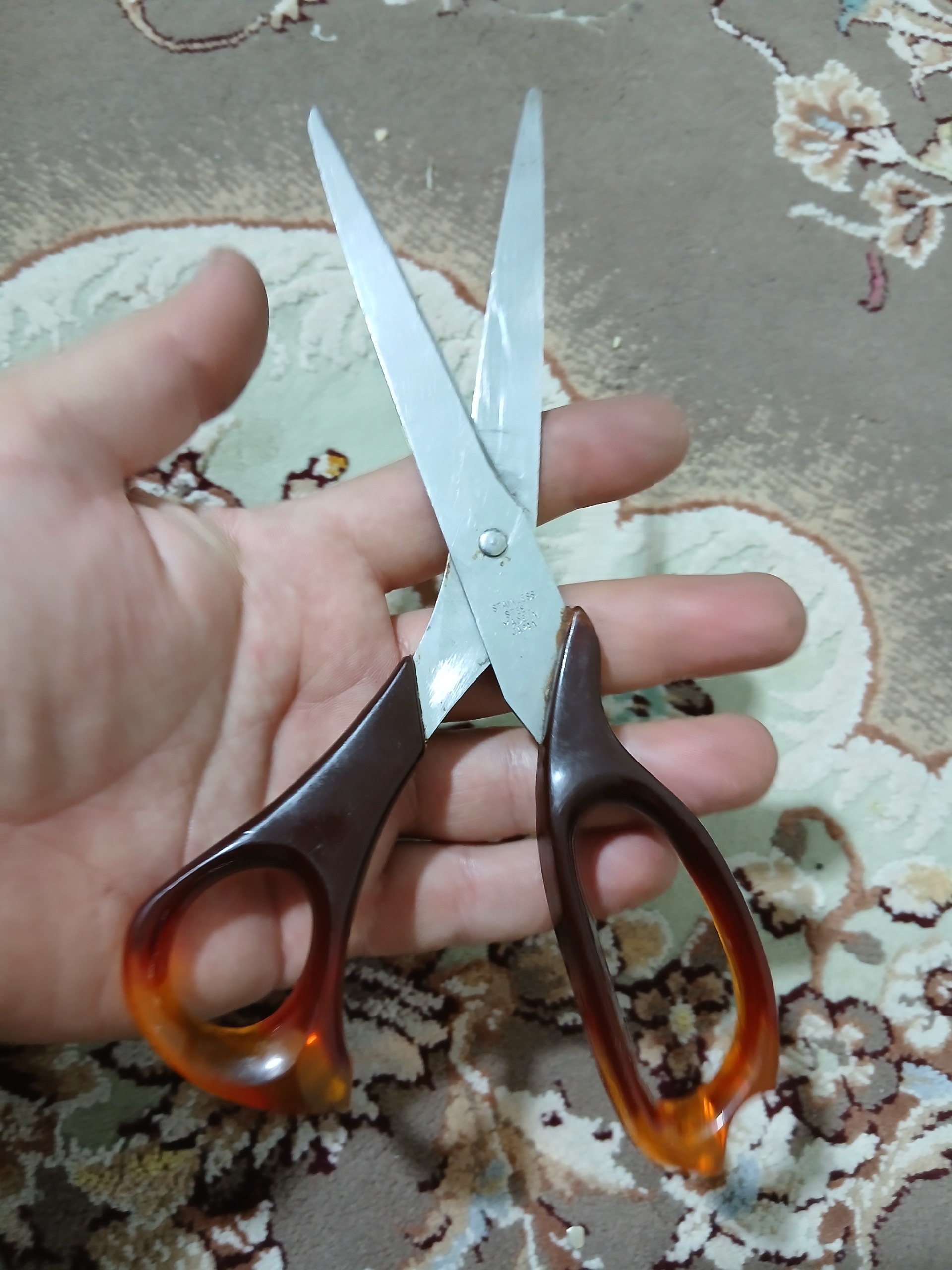 قیچی قدیمی اصلی ژاپن هست سالم و درحد کاغذ اینارو خوب میزنه اما پارچه رو گیر داره باید درست یه تیز کردش لق اینا نیست لطفا دقت کنی ظاهر طبق عکس ها بعد از تحویل فید بک لطفا بزنید