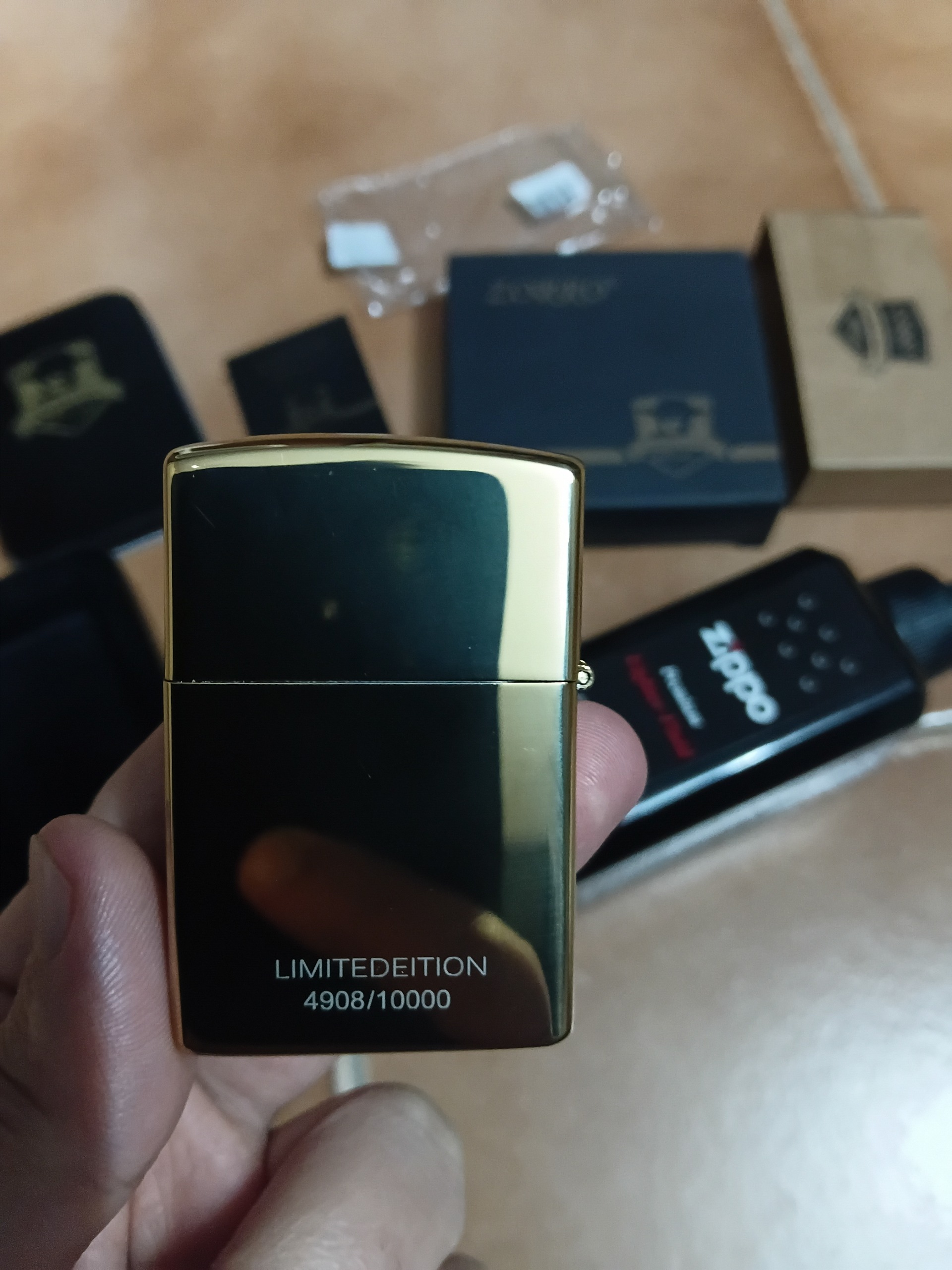 به همراه جعبه اصلی (مقوایی و فلزی) 1عدد بنزین زیپو نو 250 میل و 1 عدد بنزین زیپو 250 میل خیلی کم استفاده شده